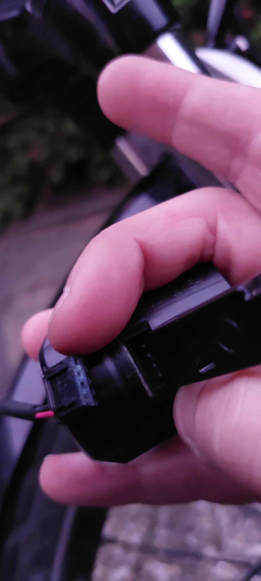 Ist zwar ein wenig unscharf aber sollte erkennbar sein. Da ist zwar vierpolig, aber es stecken nur zwei Kabel dran.
