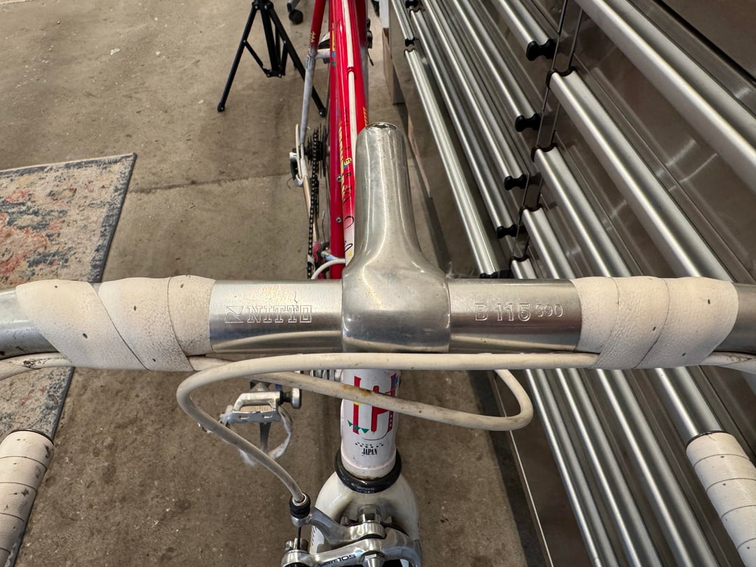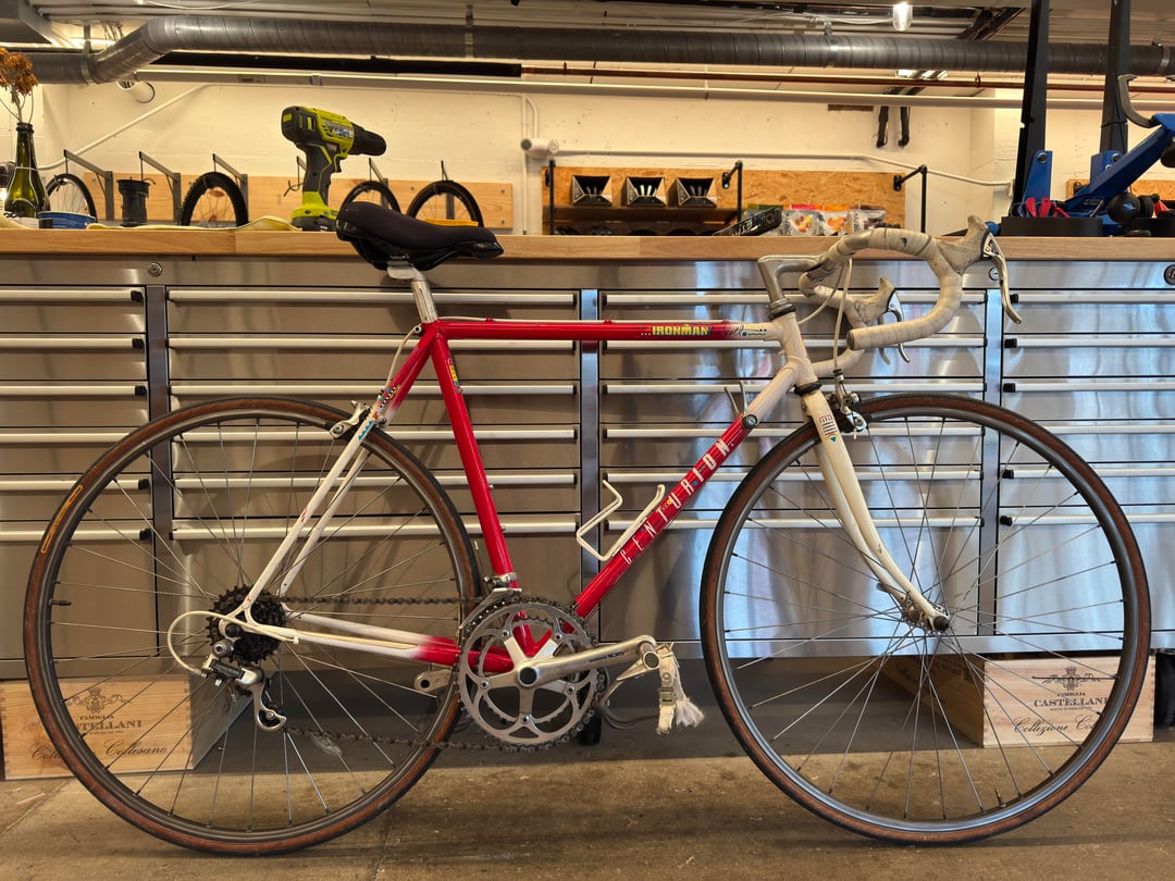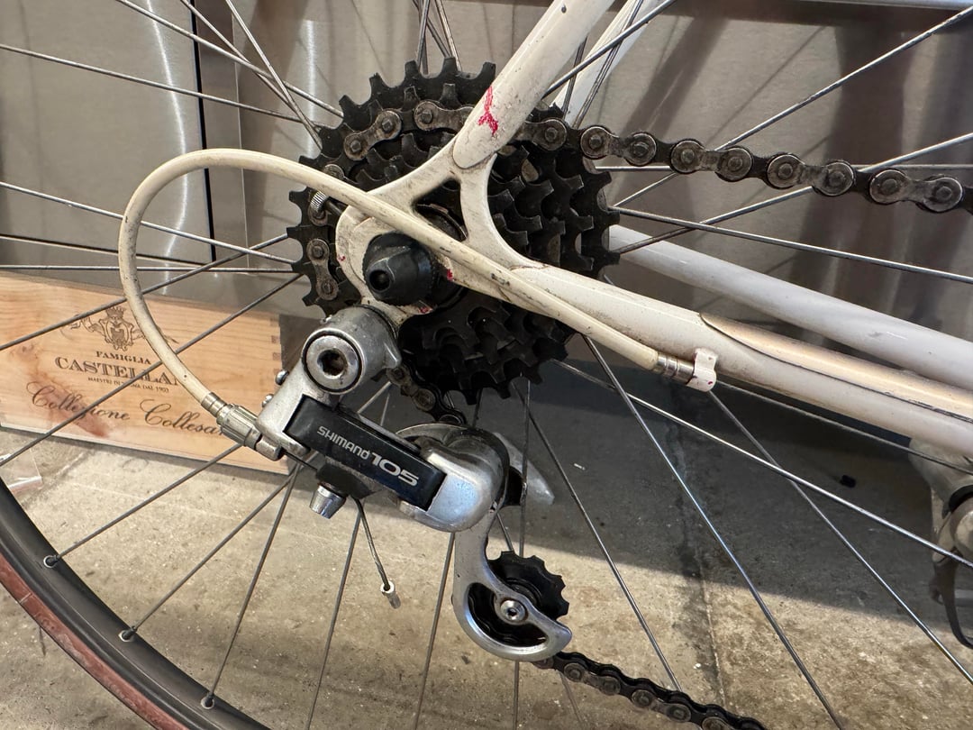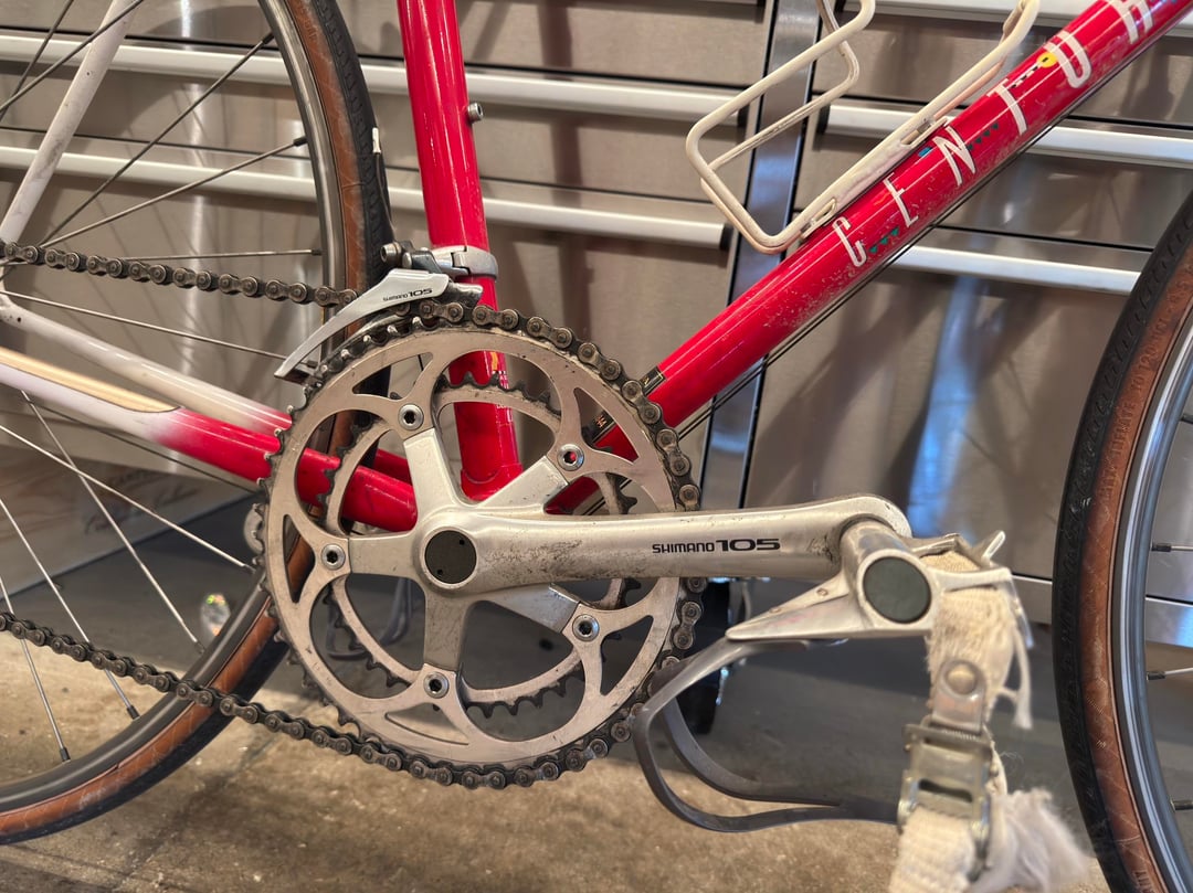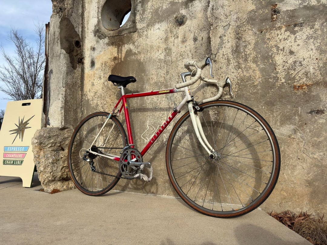 Literally found this in a loading dock, frame had fallen by the dumpsters with wheels scattered nearby. Couldn’t believe it when it was in basically perfect condition. Tires hold air, gears shift nicely. Only small nicks in paint. No seized post. Rode really good around the block but is much too small for me.