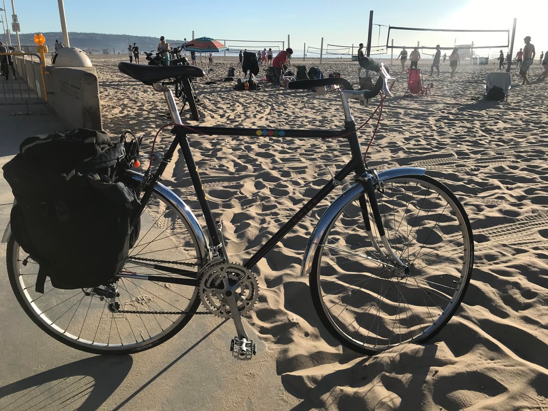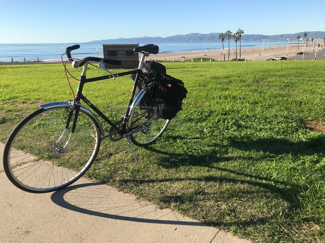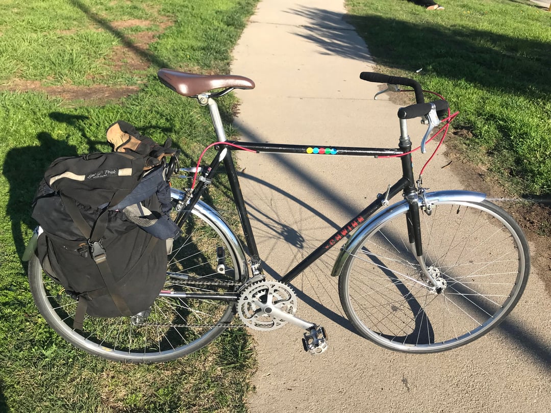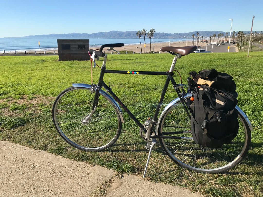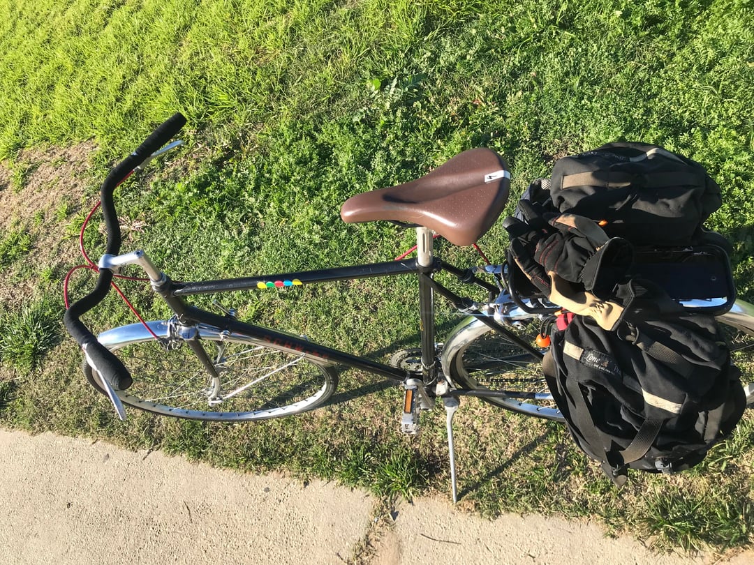 Bought it used on CL about 20 months ago. $100. Removed orig drop bar and fwd brakes levers for a $5 flea market upright bar, and Weinmann levers. Added flea mkt fenders. Had rear rack and panniers lying around. And English countryside 'cycle on the cheap!