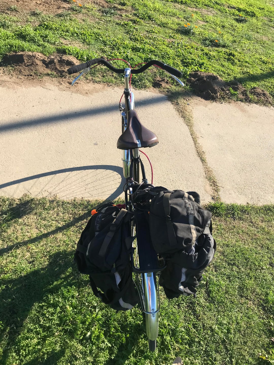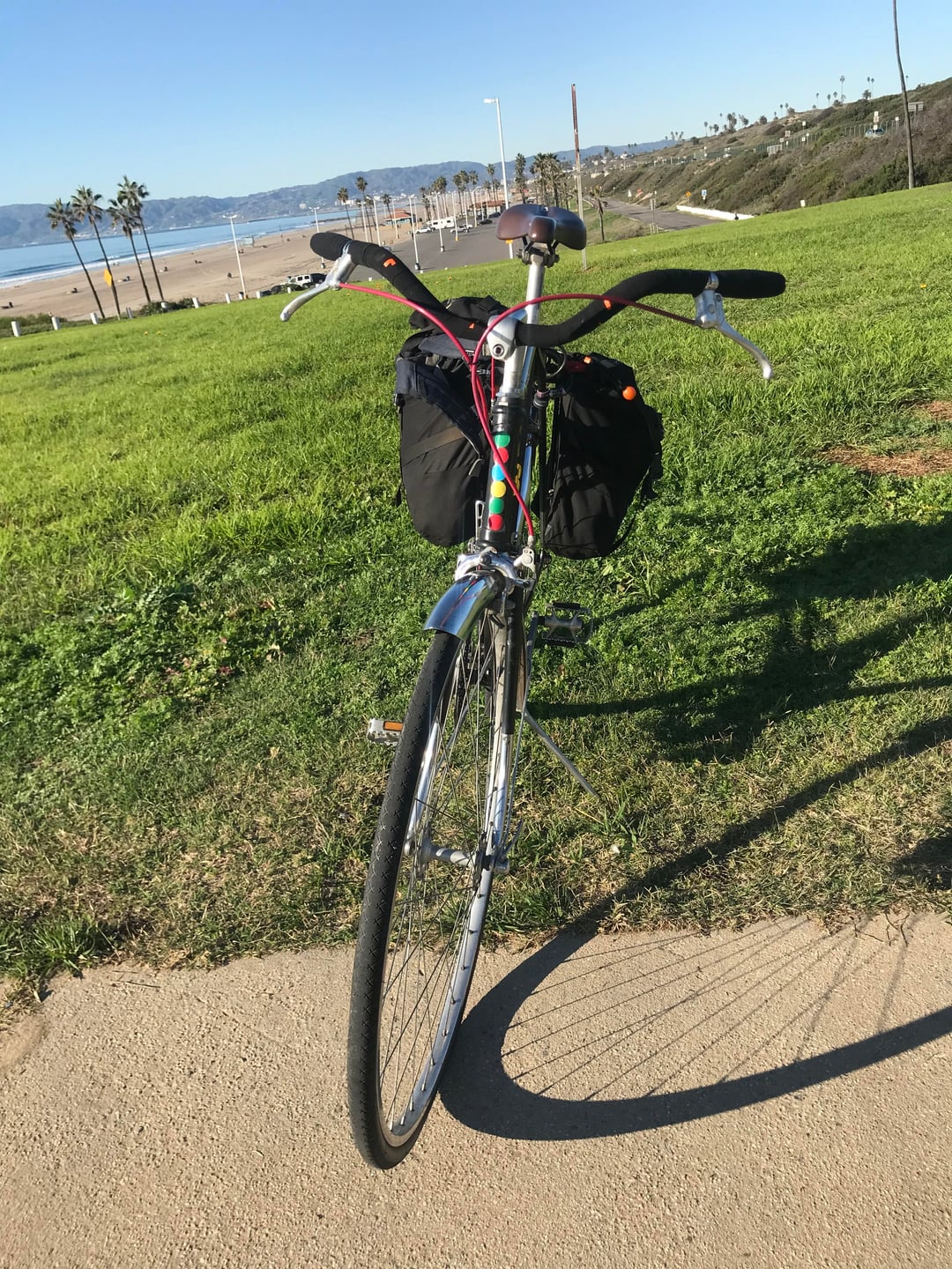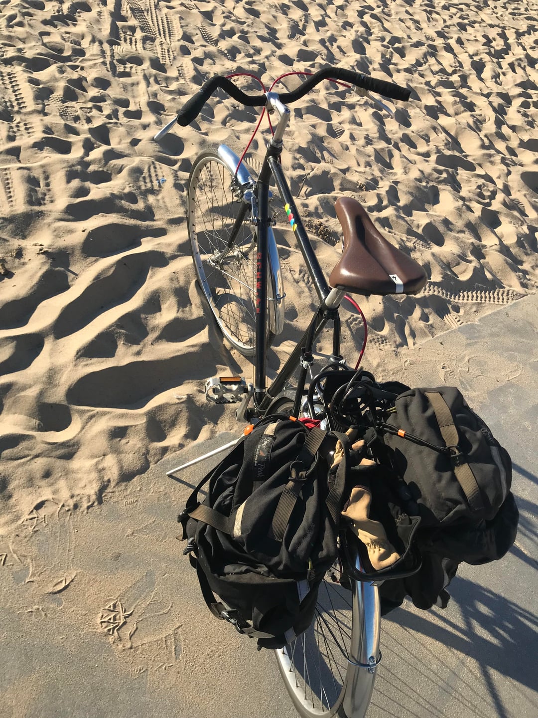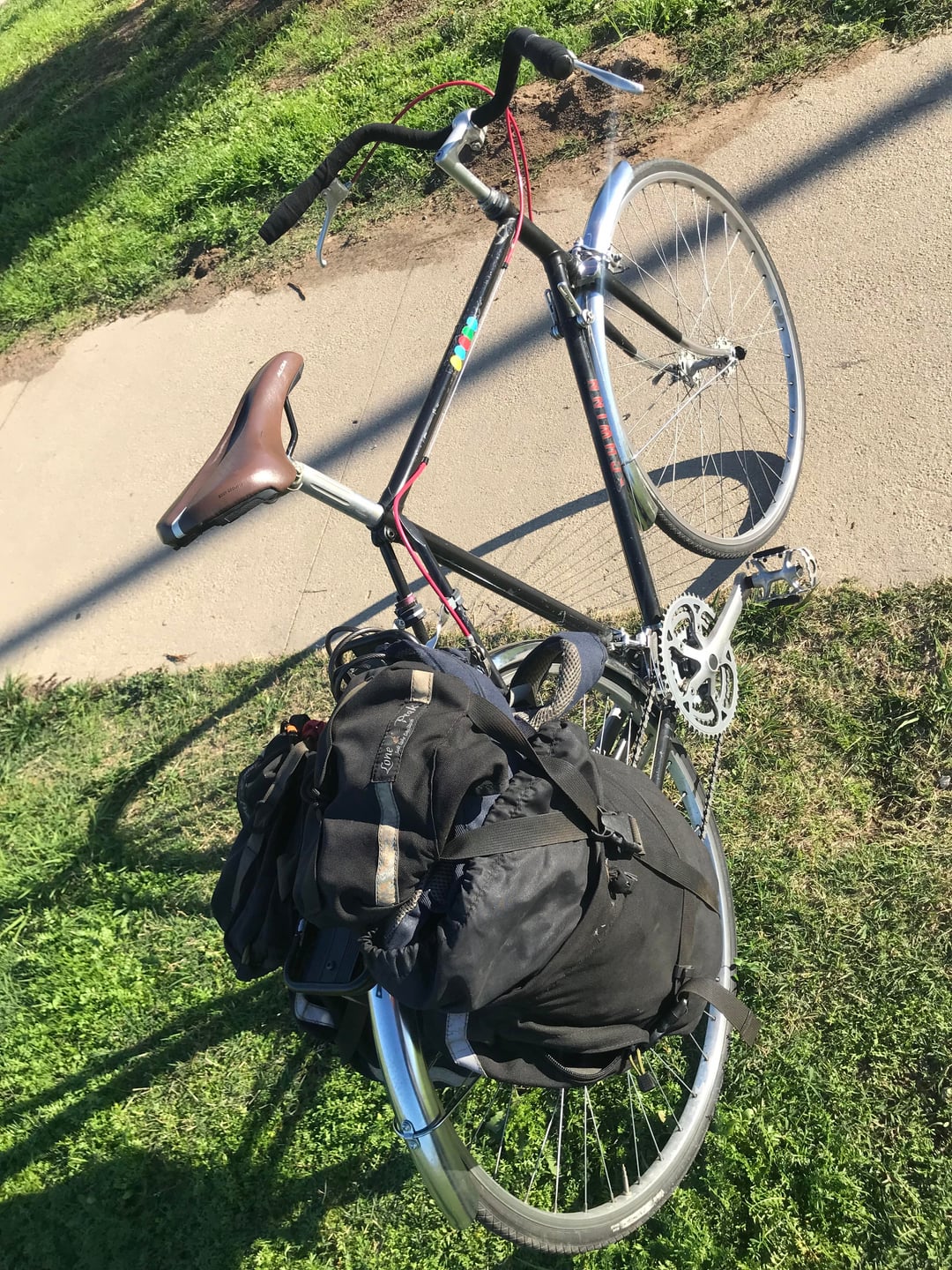 Bought it used on CL about 20 months ago. $100. Removed orig drop bar and fwd brakes levers for a $5 flea market upright bar, and Weinmann levers. Added flea mkt fenders. Had rear rack and panniers lying around. And English countryside 'cycle on the cheap!
