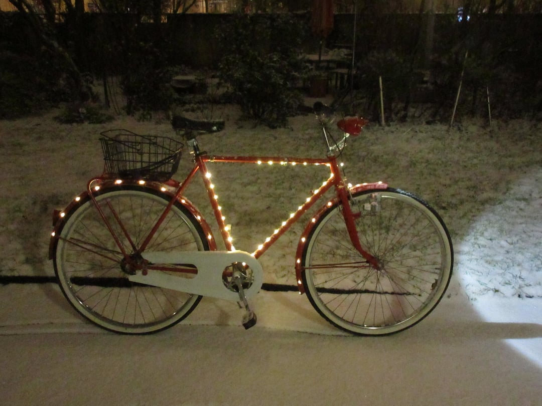 Facebook Twitter LinkedIn Pinterest Bluesky Threads I completely restored this vintage bicycle, primed and painted it, i then added LEDs to it to give to a festive appearance . And it was a true pleasure to plow through the snow with it on Christmas Eve. by SBCProductions Bicycle Bicycling Bike Biking Cycling Vintage Vintage Bicycles Vintage Bikes