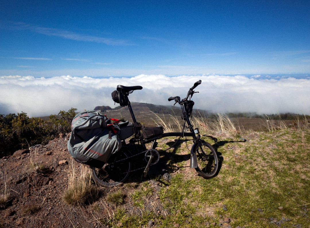 Flew to Maui with my Brompton and cycled from my hostel to the summit the next day. Hell of a climb, it took me over eight hours of grinding in my lowest gear (modified the front chainring to be 39T at least).