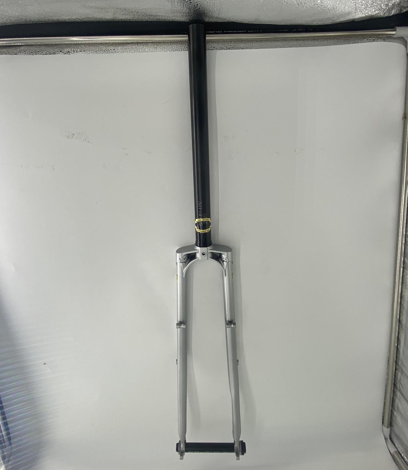 That’s a steerer tube that shouldn’t go to waste — I’d build it up with any frame you can find that has a 27cm or longer head tube.