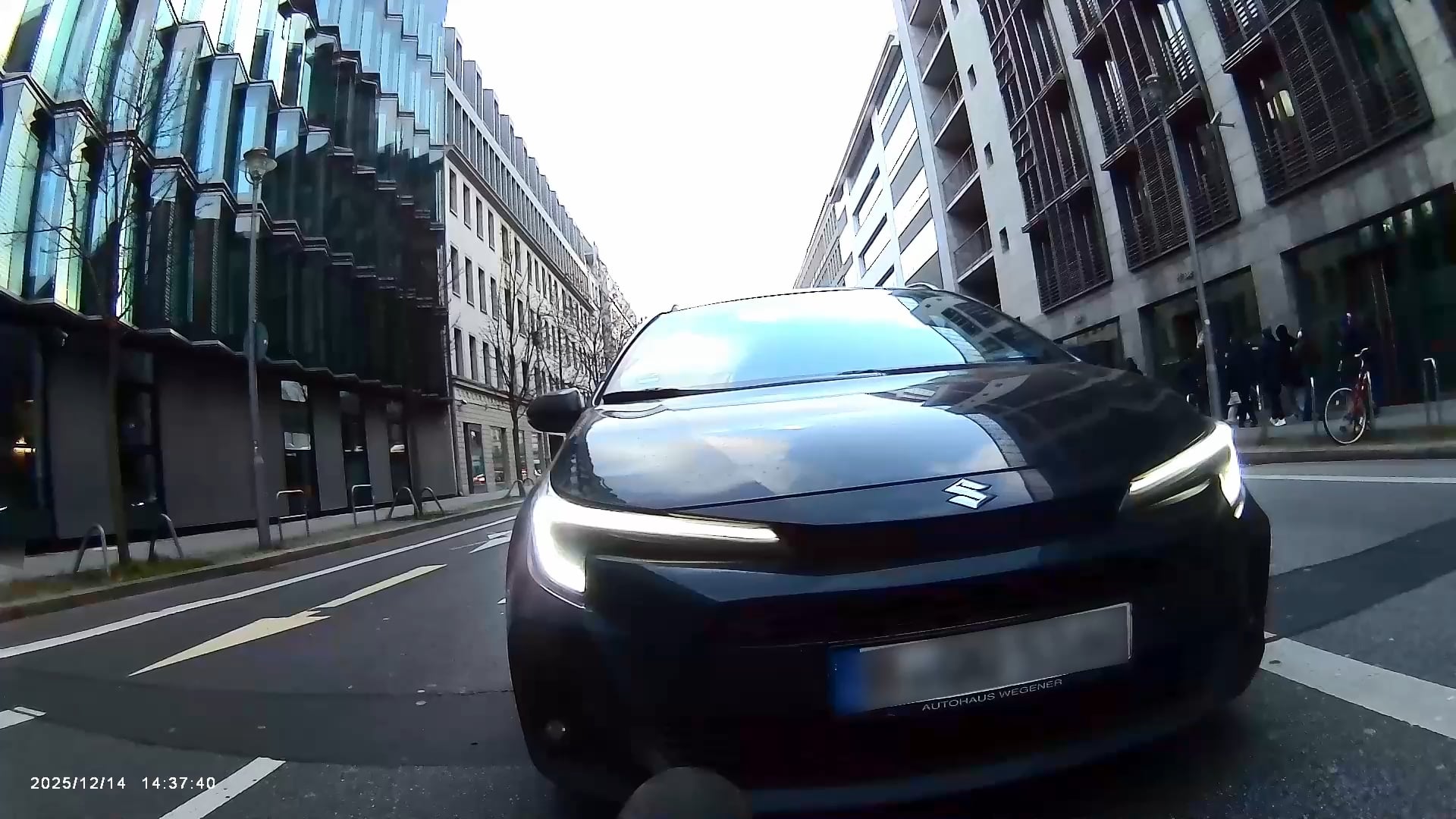 Das ist vor etwa zwei Wochen passiert, Ich wollte hier links abbiegen und habe mich dementsprechend eingeordnet. Die Ampel wurde grün, ich bog ab und beschleunigte zügig auf 30 km/h, was tatsächlich das Tempolimit auf dieser Straße ist.