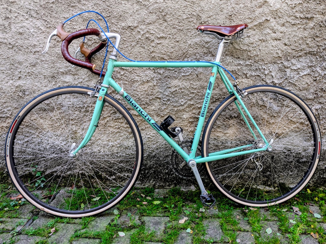 I scored this 1980s Bianchi and a 1970s Motobecane from a friend for 150euro. A LBS does a bit of vintage bike restoration. I spent about 400€ on various parts (seat, bars, brake levers, modolo brake pads, etc). My friend had installed a horribly padded "comfort" seat and flat bars with shimano grip shifters. It's all good now, ready to ride!