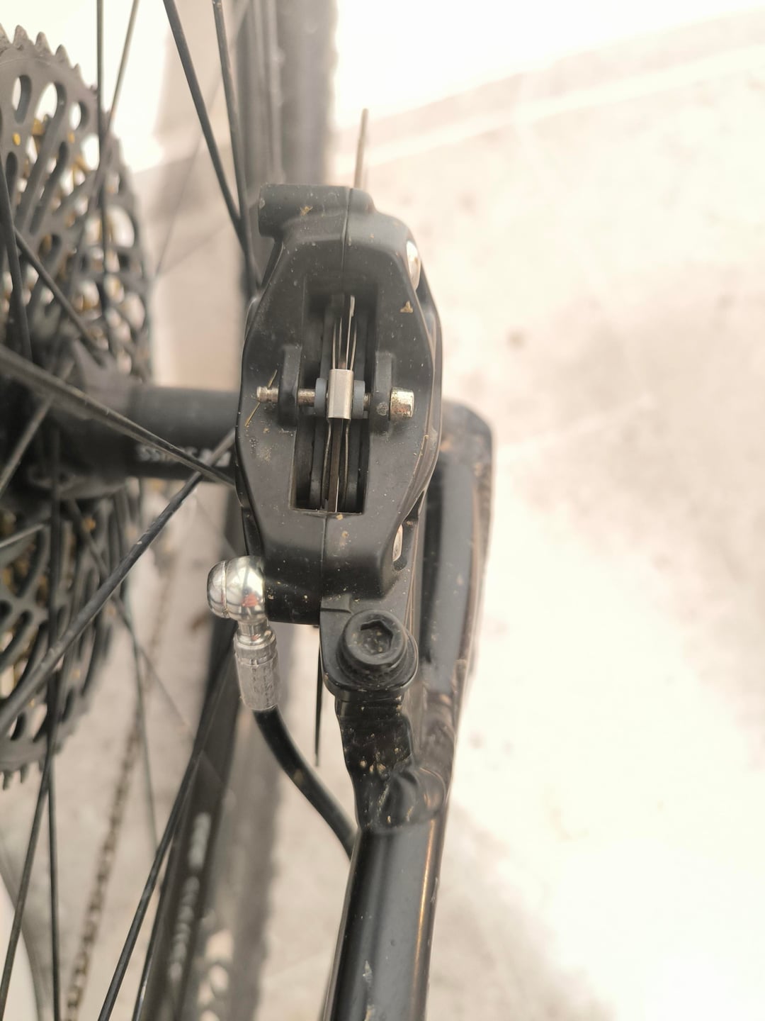 As for a device to push the pistons back in I have a little plastic tool that I use it’s a spacer that helps push those back in for install installing new pads. I think I got it at my local bike shop for about six bucks but I know you can get them on Amazon as part of a brake bleeding kit