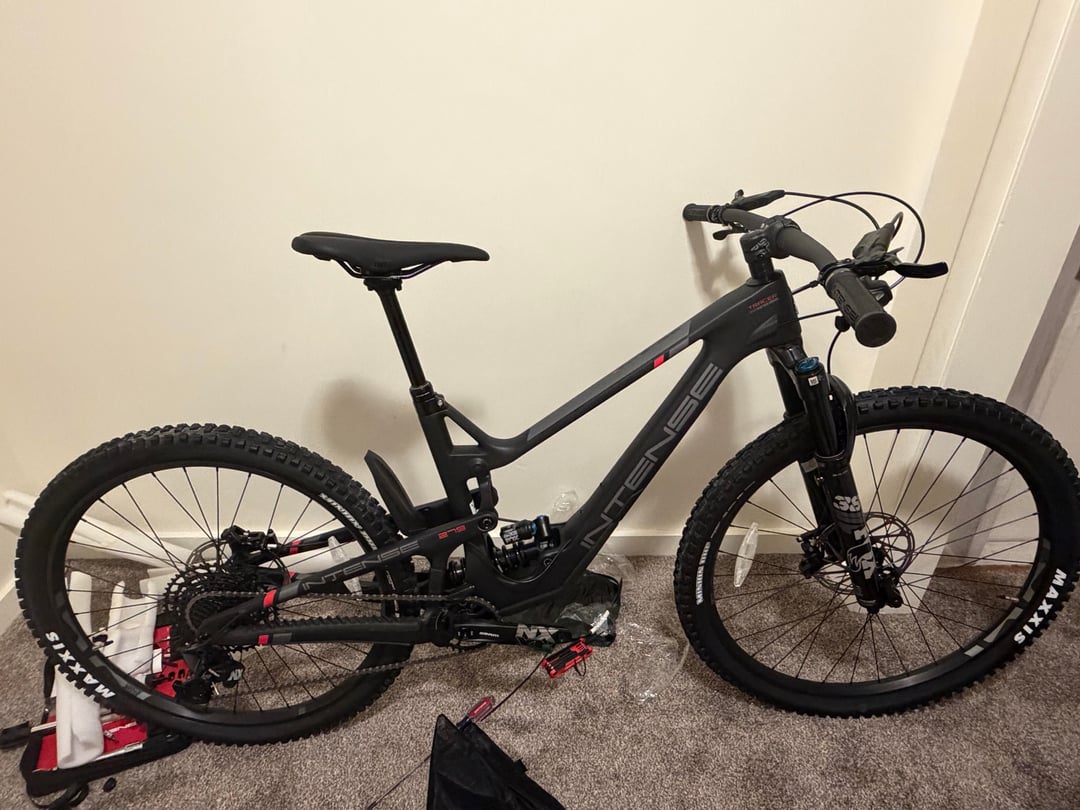 Ordered this bike on Crimmas eve. NIB 2023 Intense Traver 279. Slowly getting it together since I got it. Just need to get the cockpit set up, fill the tires, and set up the suspension. The foreman isn’t happy with how long it’s taking me to get the bike set up.