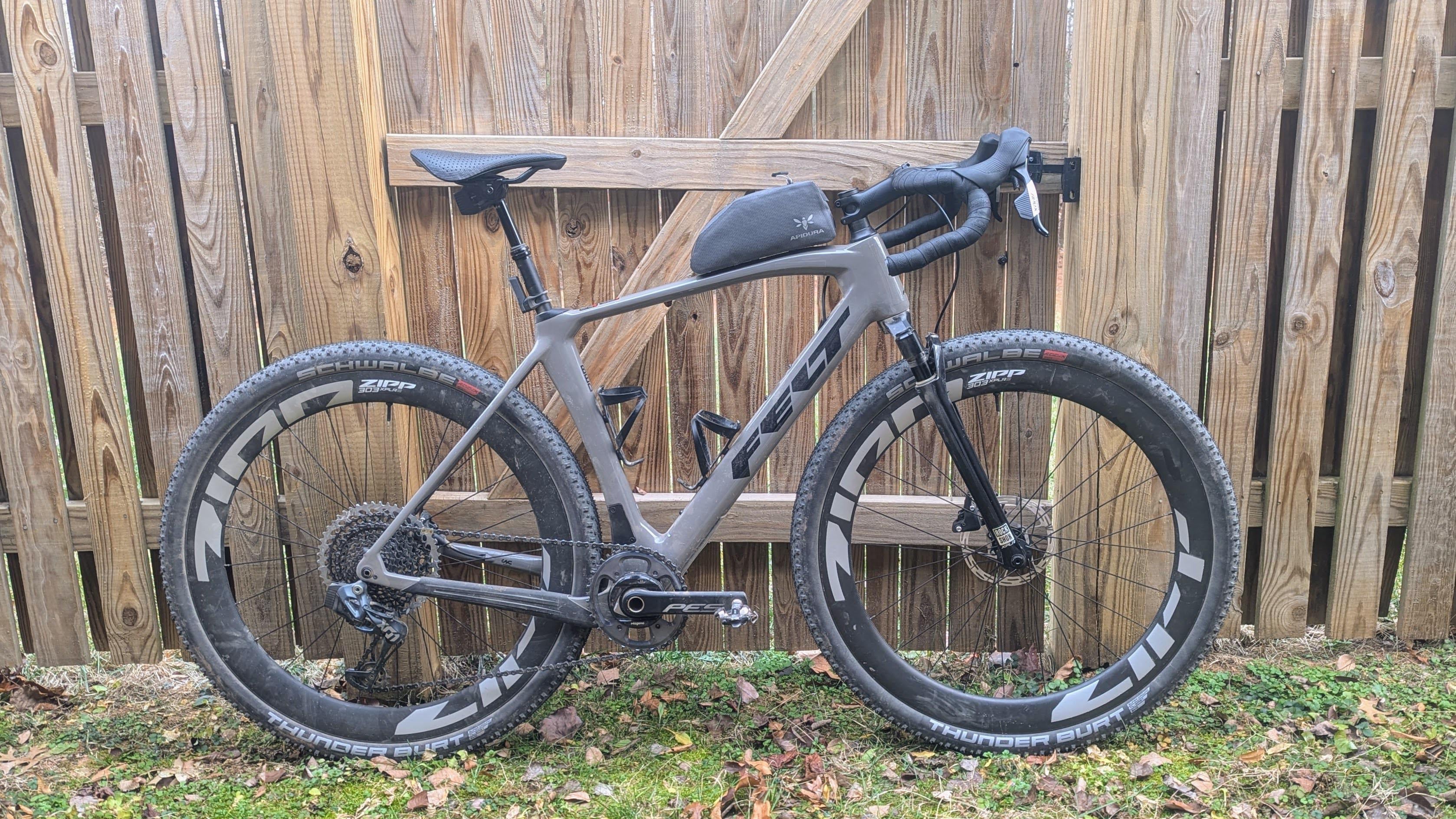 And I won't wash it till spring! The bike isn't light – comes in at 23 lbs and feels fantastic on rough gravel and singletrack. The Rudy fork really smooths out washboarded roads in ways that a high volume tire alone simply can't do.