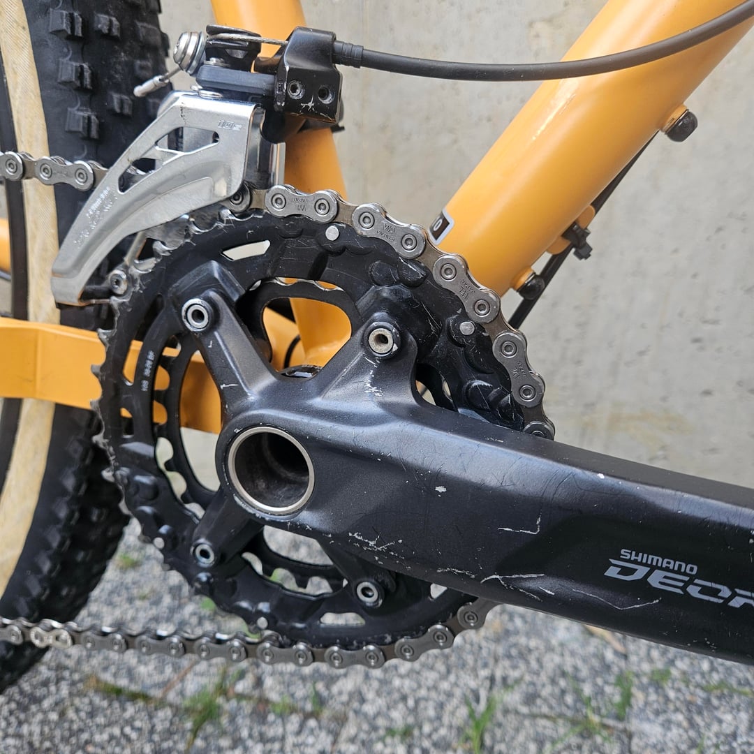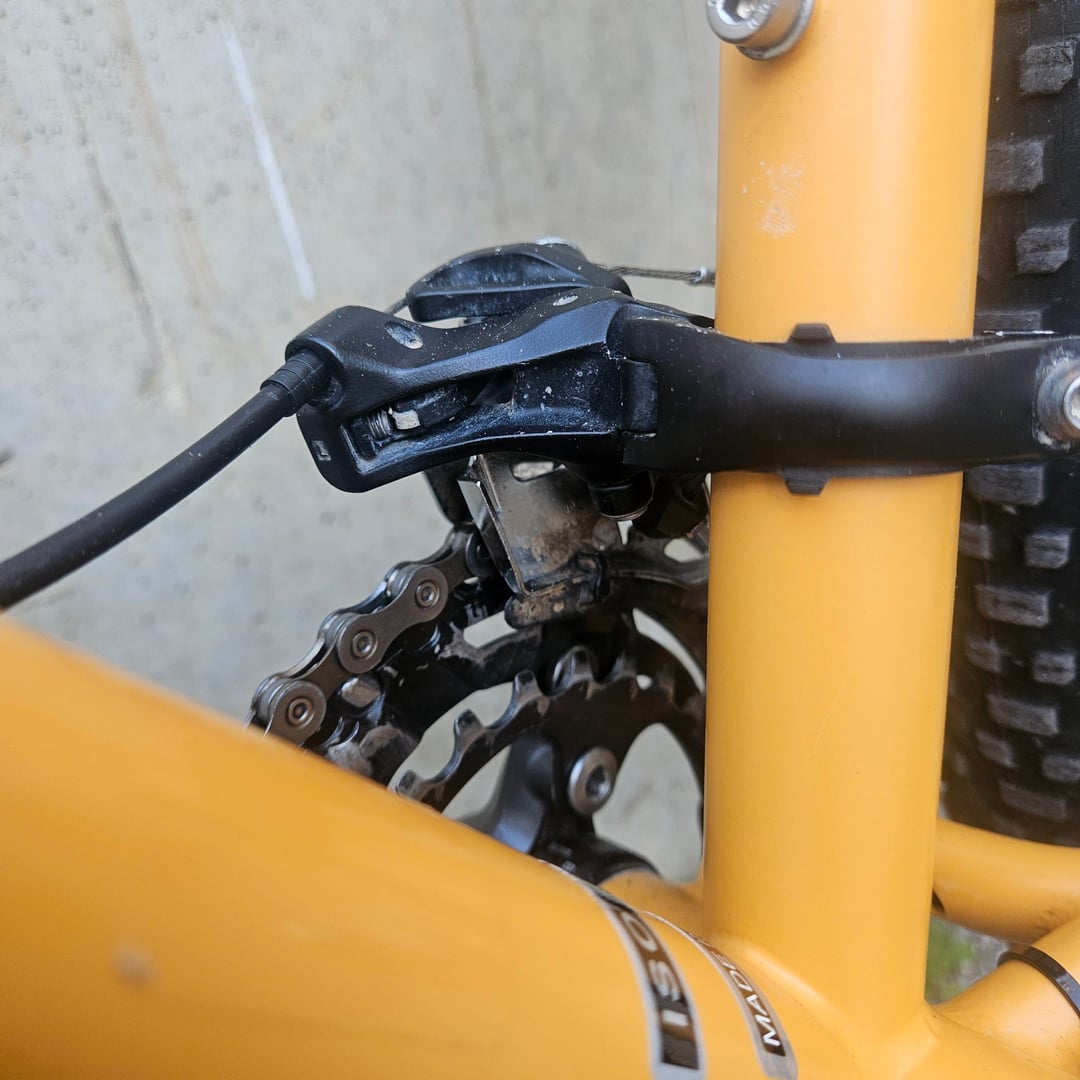 Drivetrain set up: Shimano Deore cranks with 36/26, 10-speed Shimano Tiagra 4700 STI works with Shimano GRX RD-RX812, I know it is 11-speed, but set limit screws perfectly it works well. Cassette Deore, 11-46,