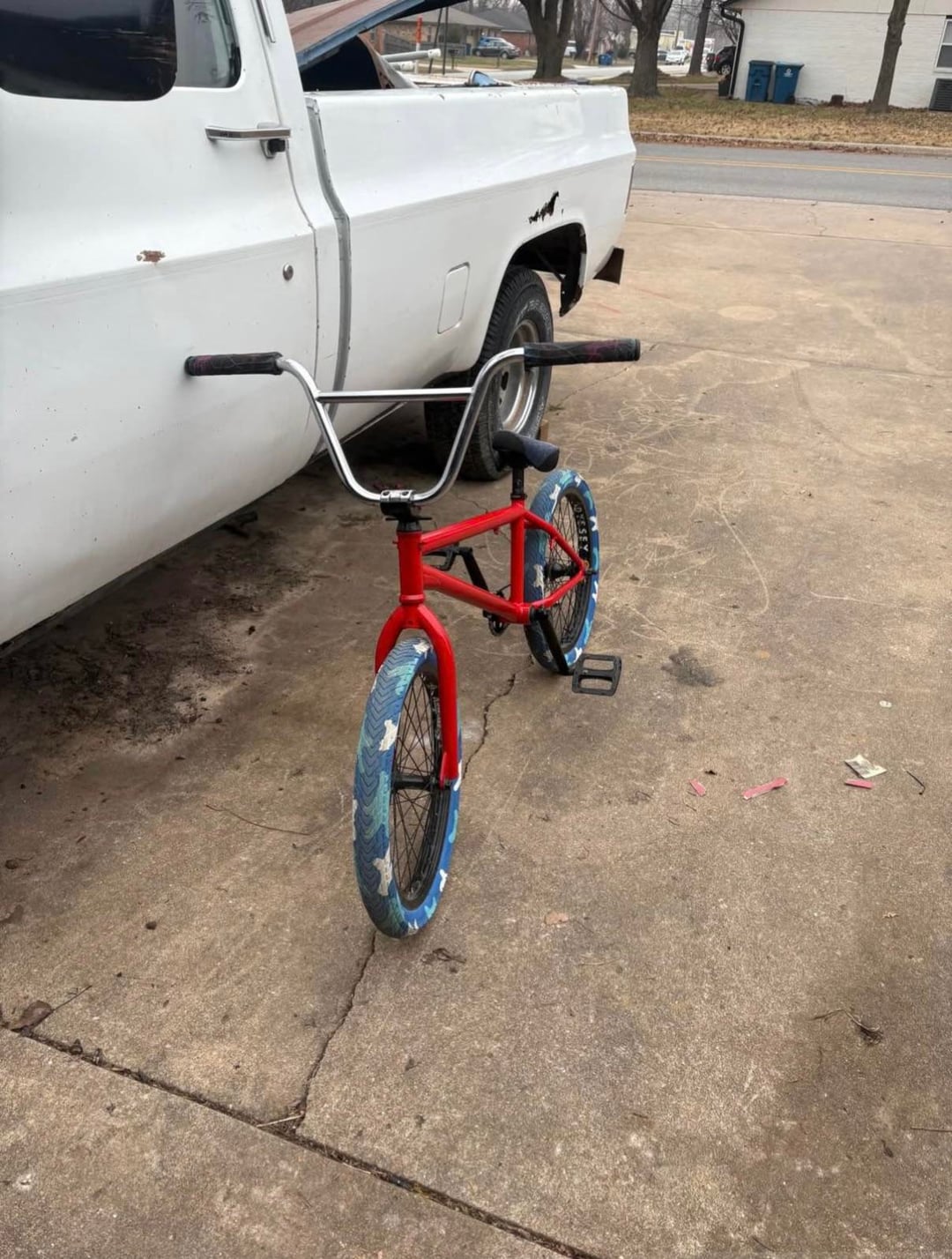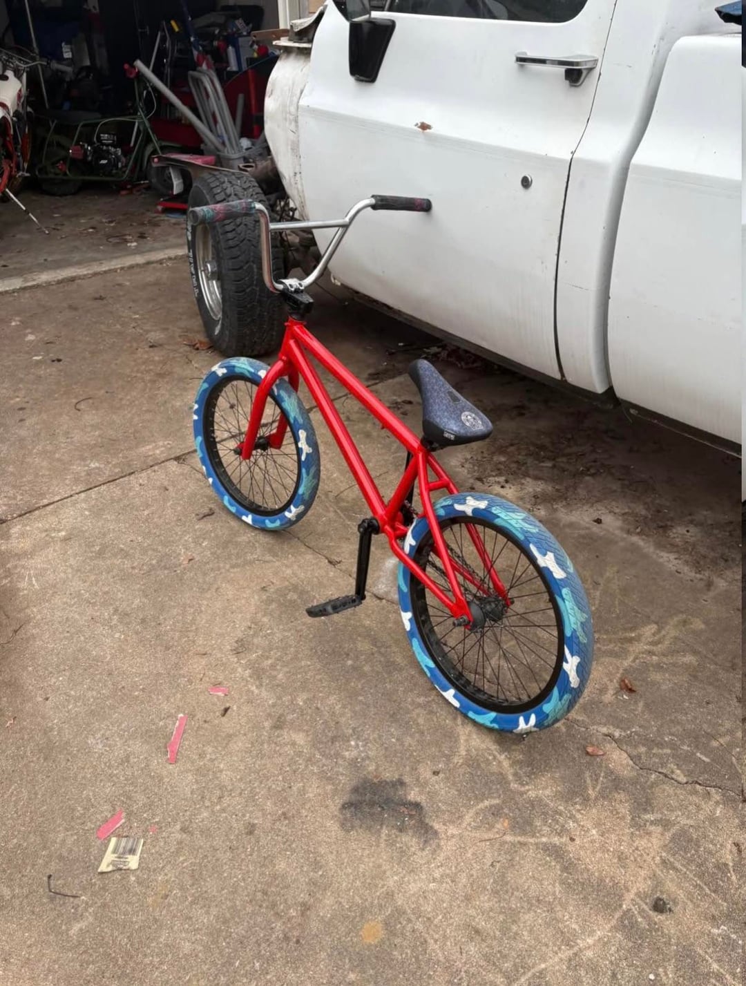 In the new photos, it looks like he painted the frame and fork red, and changed the tires.