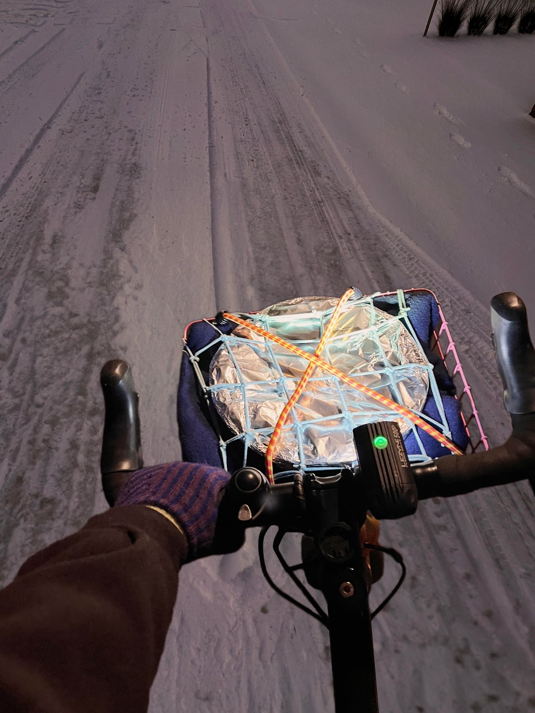 Snow tried to claim both cyclist and apple pie. Both survived :•) by mozzarellastick_ Bicycling Bike Bike Commuting Biking Commuting Cycling