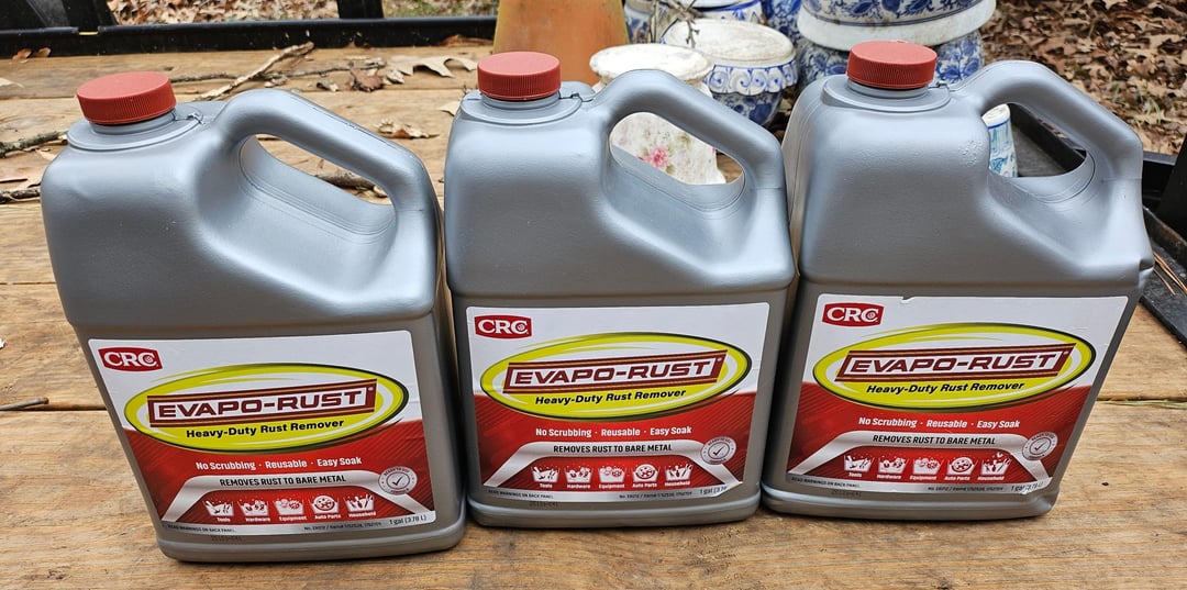 This has been several weeks of on-and-off activity, but as of today, paint has been stripped, frame and fork finished a three day soak in Evapo-Rust (removed daily to check progress and scrape rust spots that Evapo-Rust had superficially converted to expose underlying, untreated oxide).