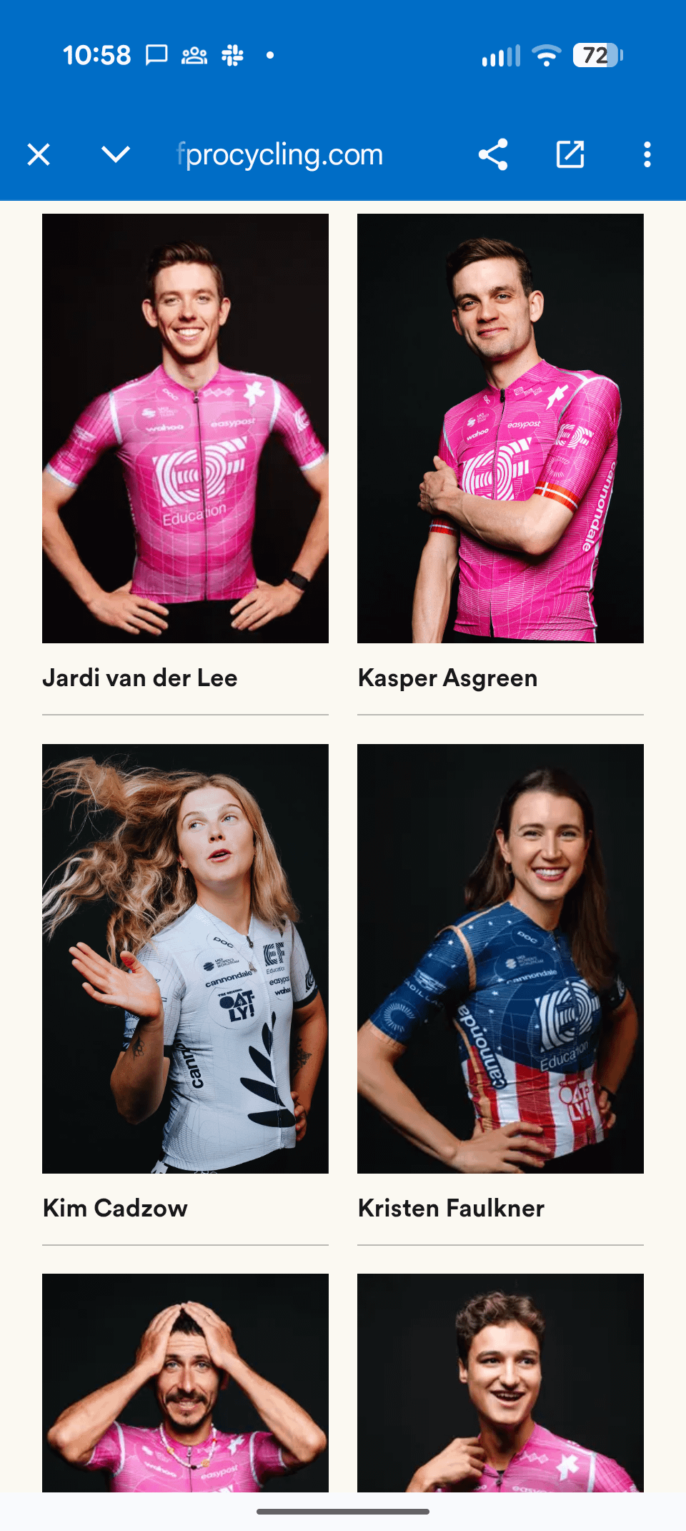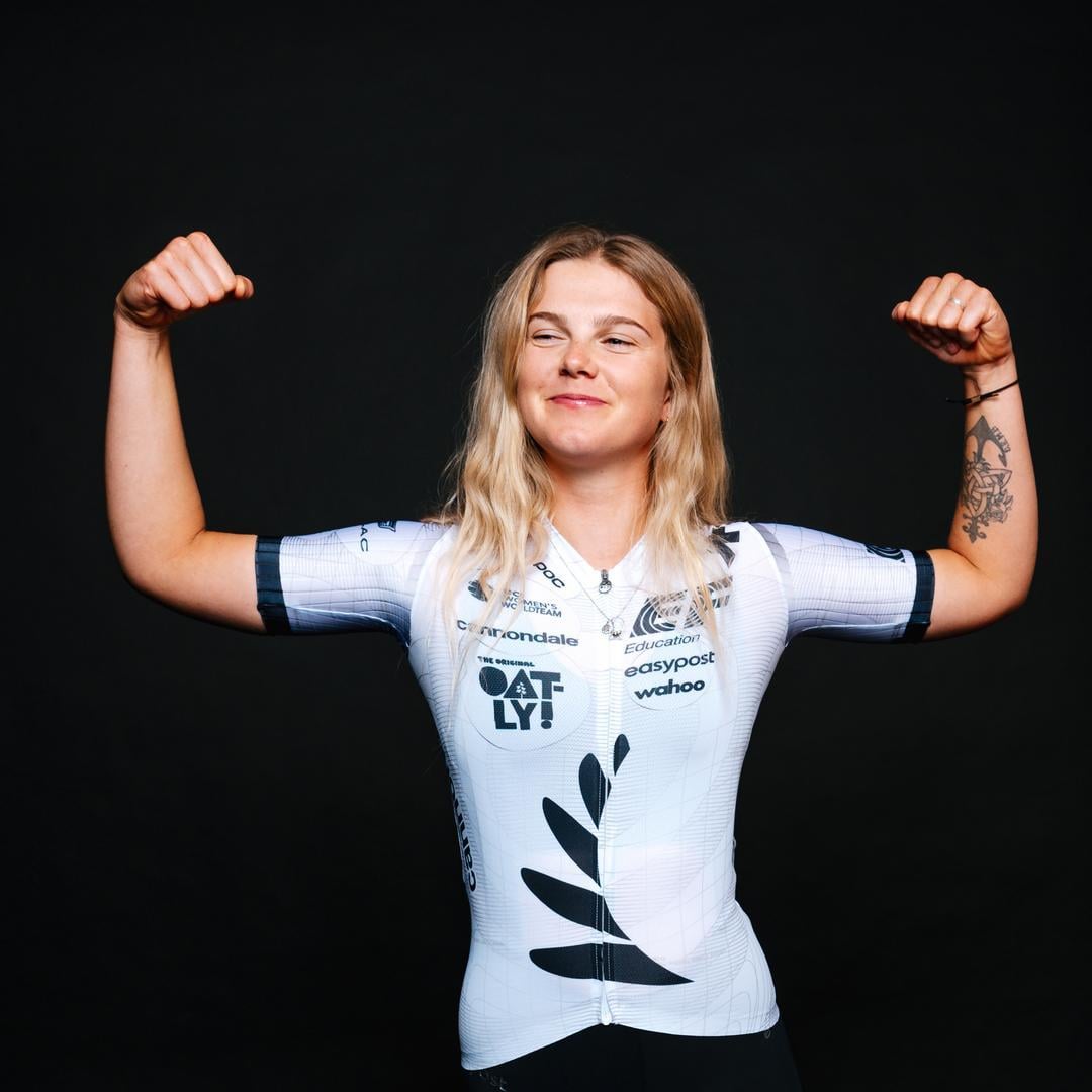 The more I see these, especially on the riders, the bike I like them, and the design flourishes, like the mirrored swirl between the EF logo and the pink print, are really nice. The teams designers still got it — which is especially evident when you see Kim's NZ champ jersey.