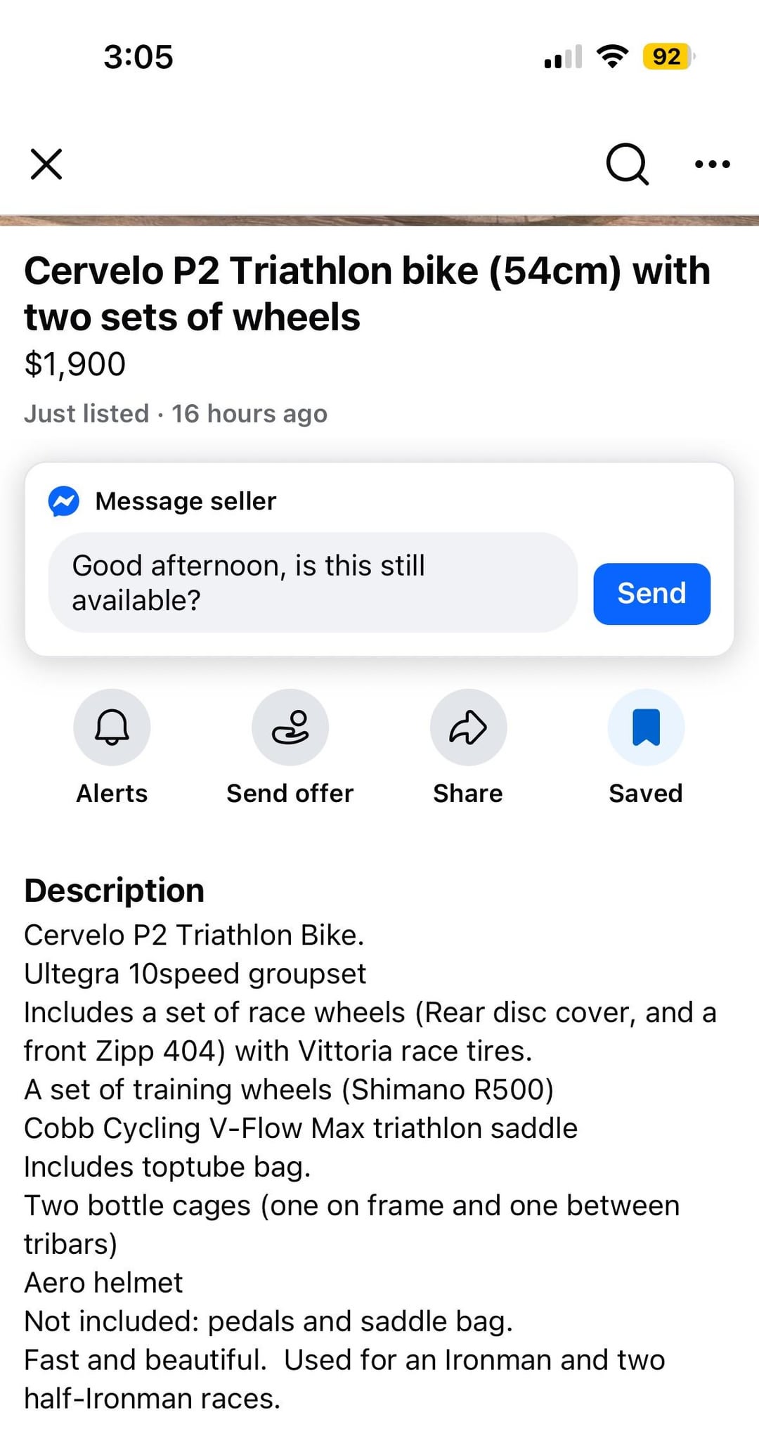 The bike alone with shallow aluminium wheelset IMO is worth no more than $1000CAD. A new pair of ICAN 50mm wheel like [this](https://it.icancycling.com/products/carbon-road-bike-wheelset-alpha-50-pro) will be around $900CAD and an used aero helmet around $200-240CAD so if you buy an used wheelset instead of the above the total will be similar.