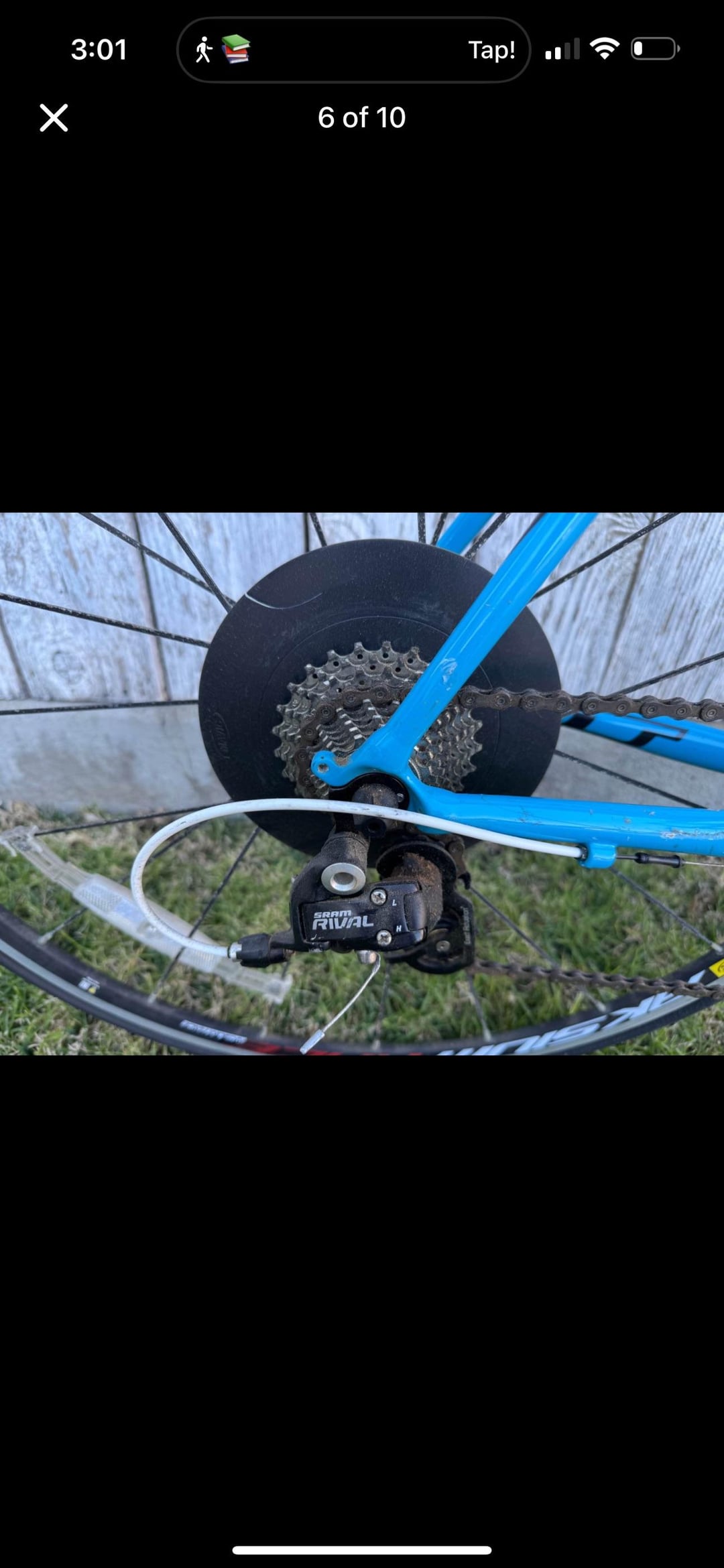 Aluminum rim-brake bike with SRAM’s 2×10-speed Rival groupset. The 10-speed Rival groupset shifts better than Shimano’s old 10-speed 105/Ultegra/Dura-Ace groups due to the SRAM group’s longer shift cable pull. My only gripe with the SRAM groupset is that you use just 1 finger on each side to do all the shifting (the double-tap single-paddle shifting system), which can make your finger feel tired well into a ride.
