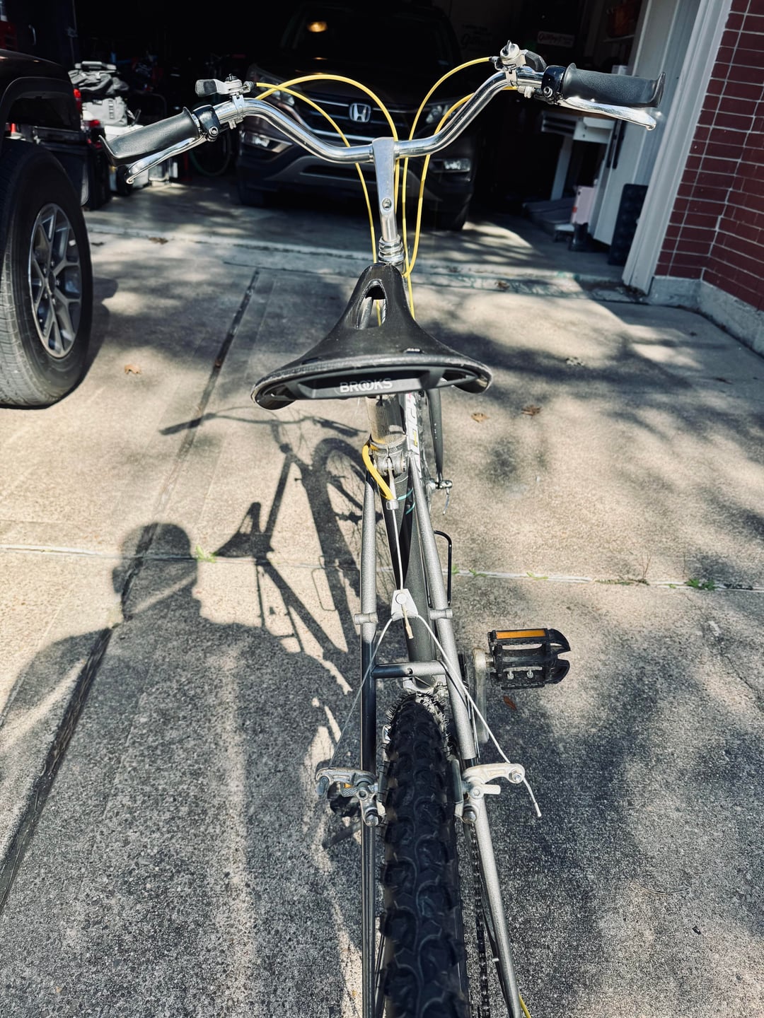 Hello everyone!! I finally had a chance to go over the Technium I picked up on a work trip! I threw away the horrid saddle it came with and threw on a nice Brooks saddle. It needed very little work, so just lubricated the wheels, breaks, chain, derailleurs and gear levers. The tires look brand new with no rubber rot so I simply aired up the tires! I need suggestions on the color I should get do the grips and pedals. I’m liking the hot pink and pastel blue on the decals so maybe that.. what do yall think??