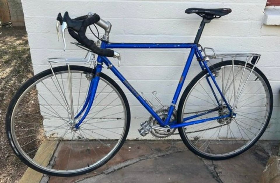 I also couldn’t find the exact paint job in any catalogue I looked in. He said that the seat post, cassette, and potentially brake levers were added by him
