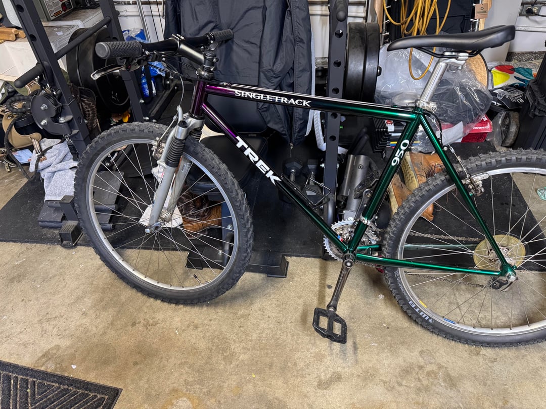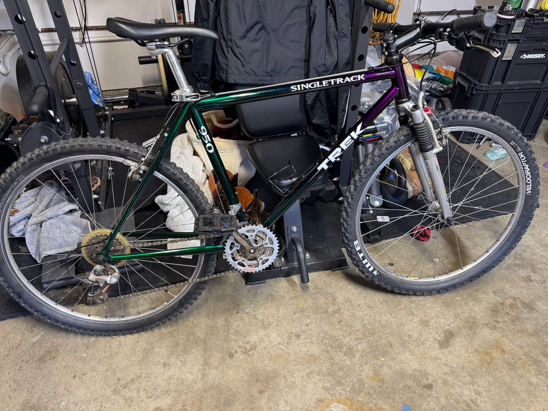 This is my trek 950 that i built for under 200 including the bike did some tasteful modifications rode it for the last few years ive enjoyed it but now im stuck between buying a new bike or keep upgrading this one my plans were to upgrade the front fork and a 1x drivetrain ………. So far ive done pedals wtb seat wtb velociraptor tires new gear’s selectors and flat bars I have another trek 930 that i started to dissembled that i got free and my plan was to turn it into a cruiser or a gravel flat bar grinder keeping it to a budget any ideas or input thank you