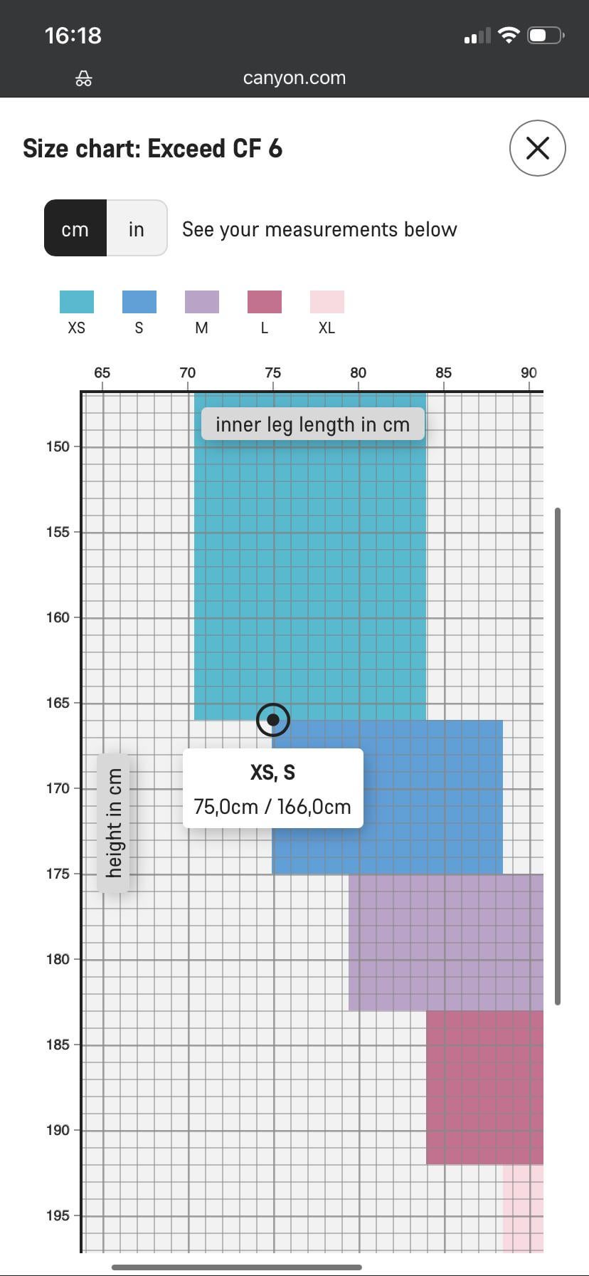 1. It appears you are looking for bike fitting help. Please make sure you post as screenshot of the Canyon size chart for your bike, with your point in it. See [this example](https://imgur.com/a/ALUfXyy)
