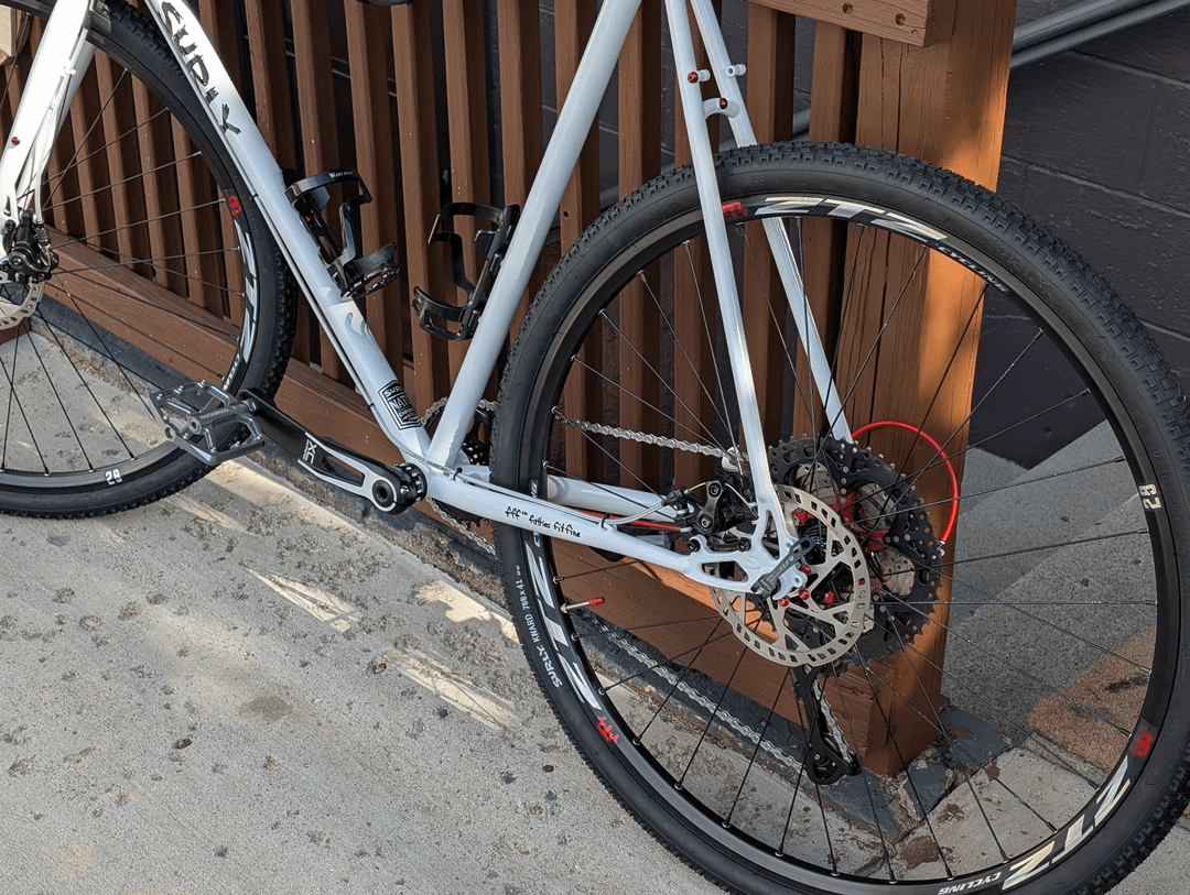 More parts are coming, I'm putting Tumbleweed pannier racks on the front and back, new bottle cages from Velo Orange, some other bits and bobs, and a new chain ring because it turns out I need a 6mm offset instead of 3mm.
