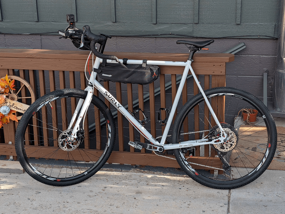 I grabbed this Surly Preamble frame during their holiday sale for $399 and have been gathering parts since. Some stuff I already had, some is new.