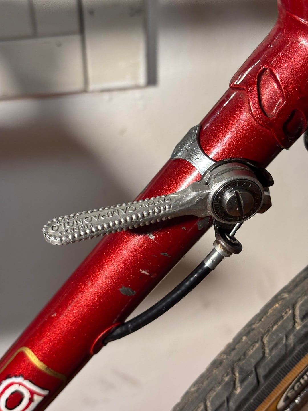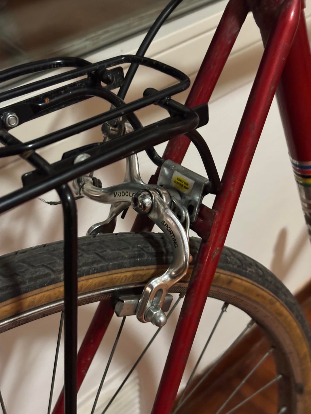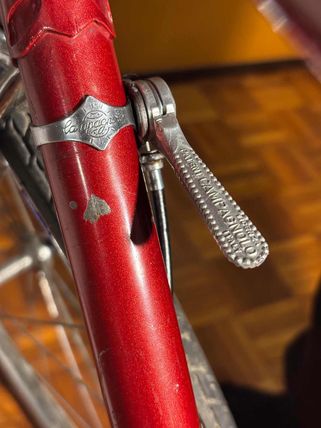 The bike is a 1971 Cicli Cinzia (small italian frame maker) with Campagnolo derailleur and shifter, iron rims and Modolo sporting brakes.