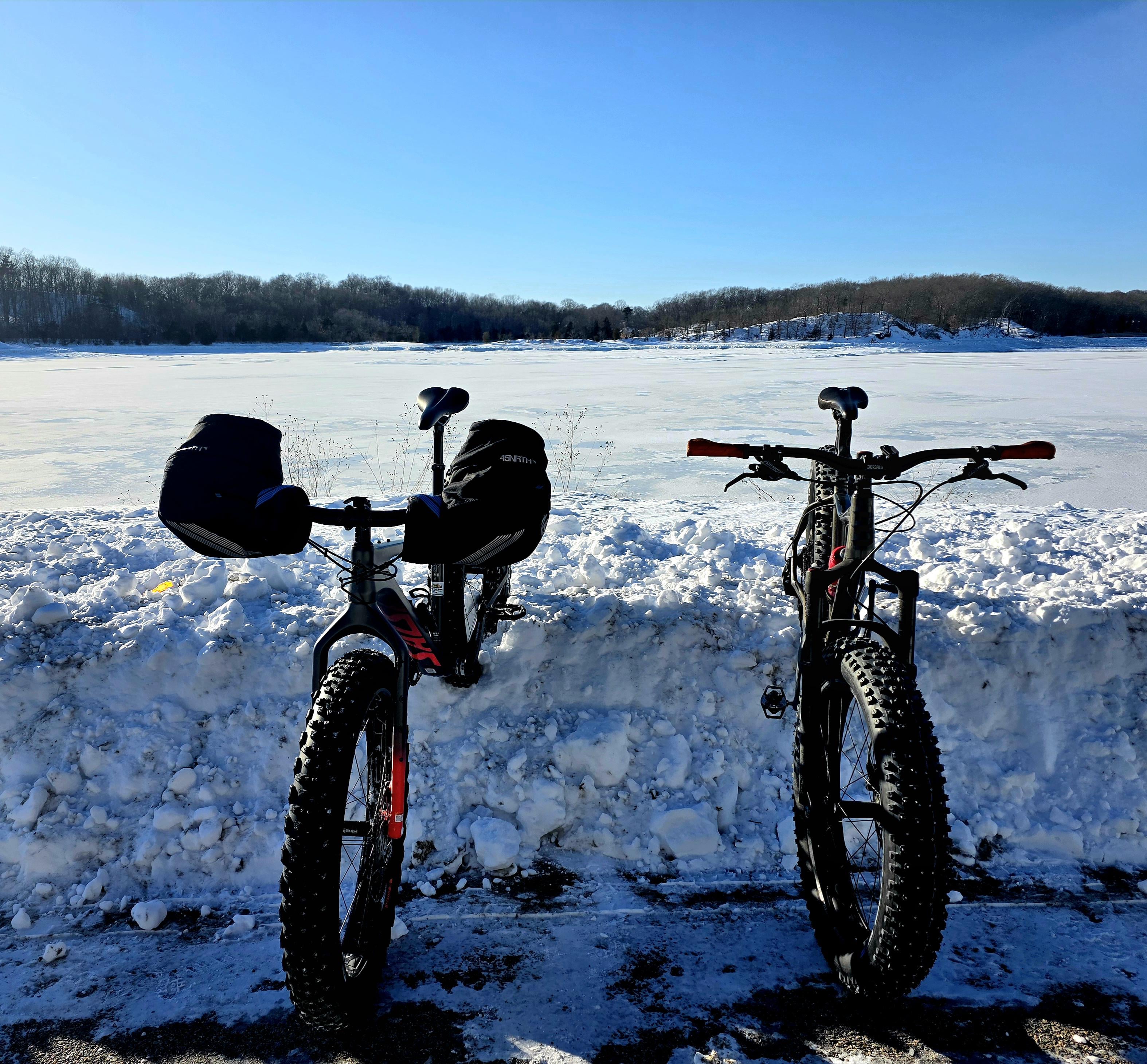 Below 0 wind chills coming off the water and best we could do was plowed paths but still got some fresh air and miles. by Crafty-Farm-8470 Bicycle Bike Fat Bicycle Fat Bike