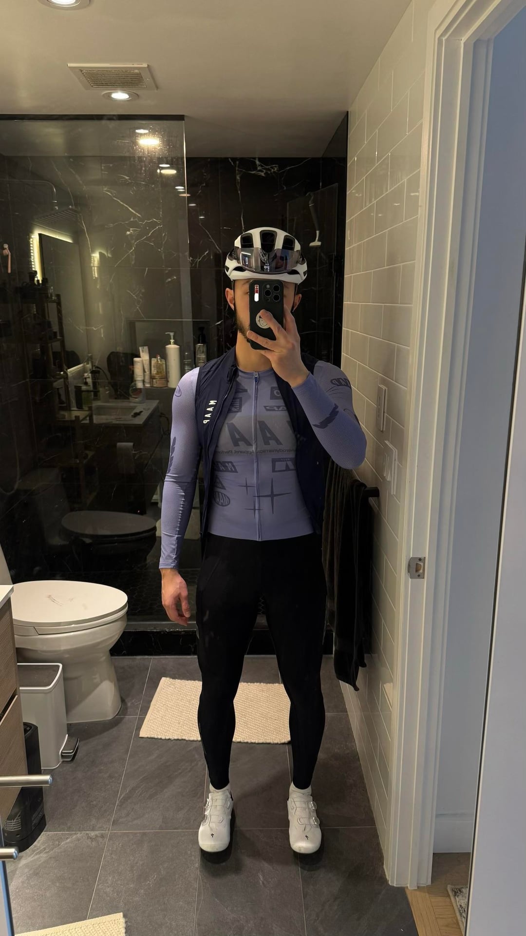 For reference I’m 178cm, 76kg. The jackets are size M and the gilet is size S but my sizing for Maap, Rapha and Assos are kind of all over the place. Usually M, sometimes S, and these M tights were so difficult to get on it sounded like I was ripping some threads but they feel good once they’re on. It sucks being between sizes.