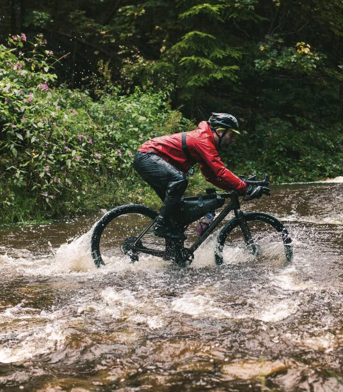 I'm looking for a really good pair of rain pants and waterproof overshoes for my gravel and bike packing tours. Requirements for both: truly waterproof, no need to take off cycling shoes to put them on, as light and compact as possible for storage, highly visible (optional).