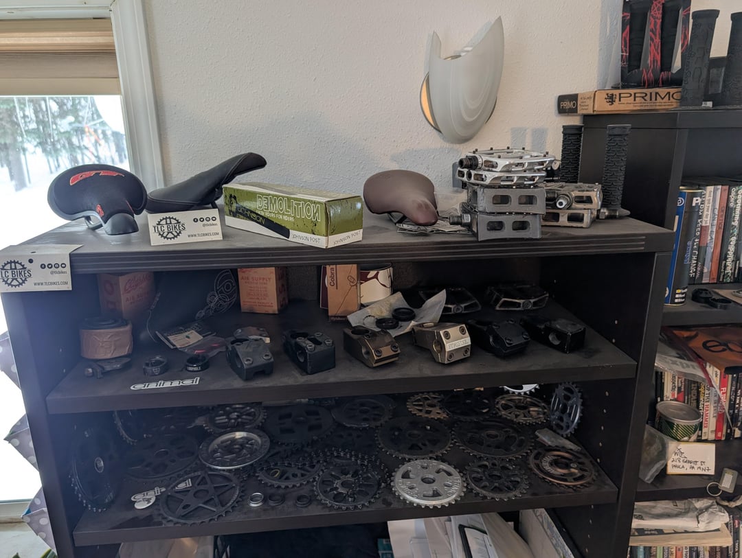 Here are some of the parts I have been saving up. I quit adding to it because I could never use everything I have at this stage in my life. by sub_zero51 Bicycle Bicycle Motocross Bicycling Bike Biking BMX Cycling