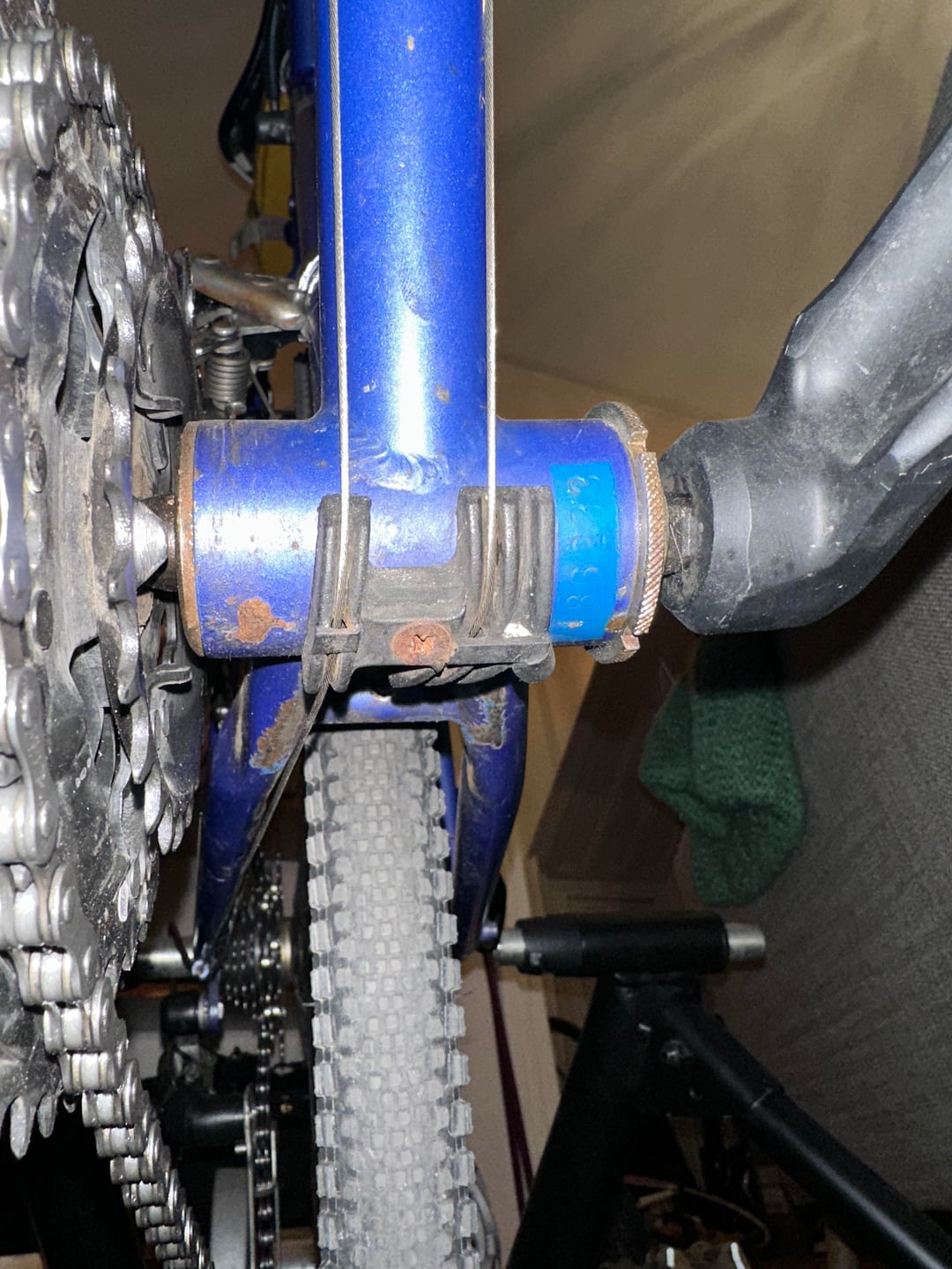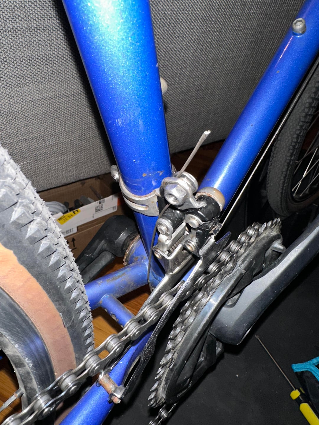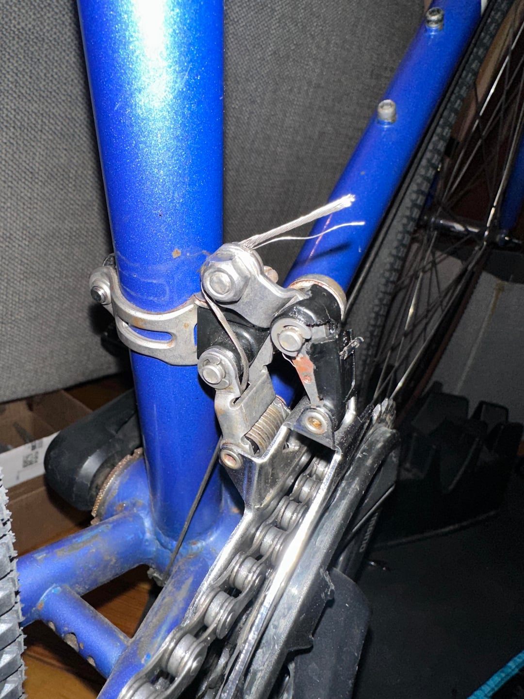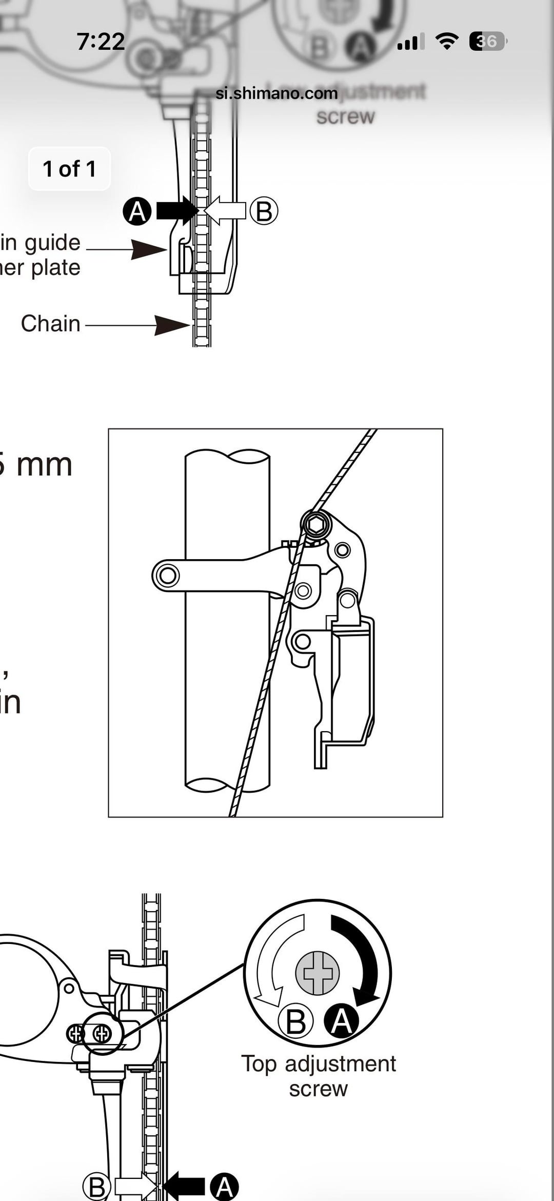 So far I have attempted routing over the metal notch, with the cable pointing towards the crank. This feels odd and certainly doesn’t create the best pull. Second, I’ve tried straight through, under the metal notch, sort of demonstrated by this diagram for another Shimano shifter. Last, I’ve tried this wonky, “through the spring” as a last ditch effort to create some sort of better leverage towards the last click.