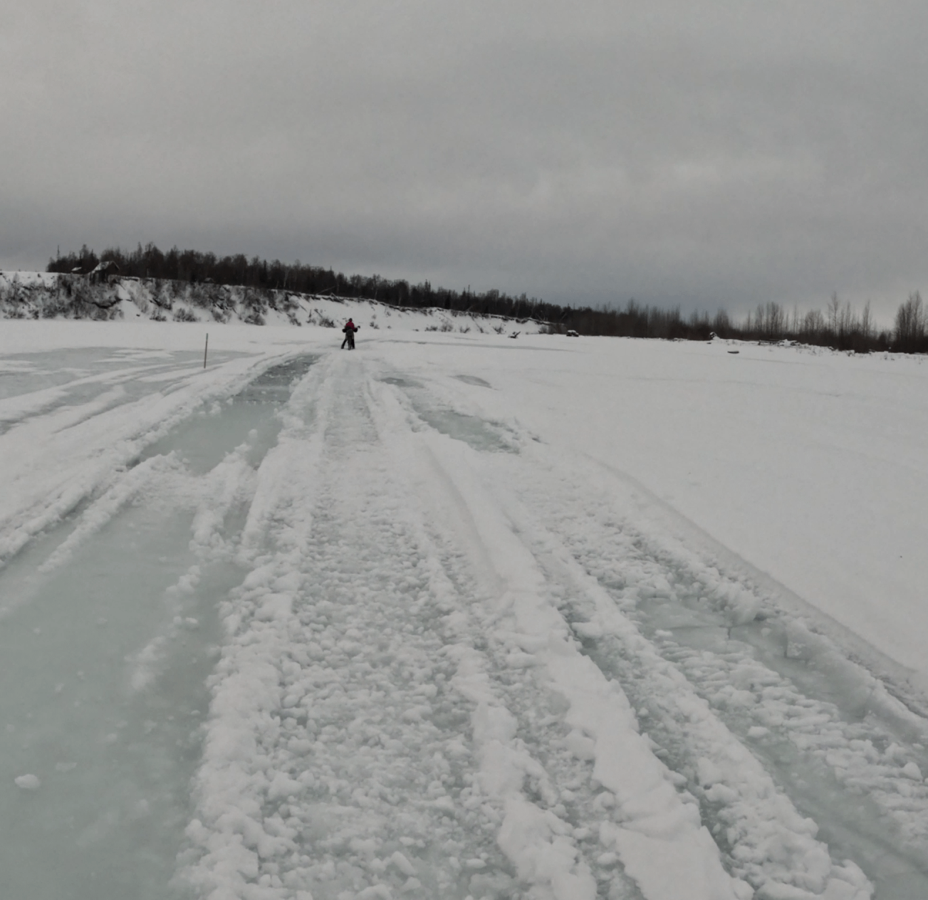 We road 35 miles out and back to an isolated lodge on frozen ice shelves along the Susitna and Yetna rivers. It was pretty sketchy stuff and one of us fell through but was lucky enough to touch bedrock without swift water.