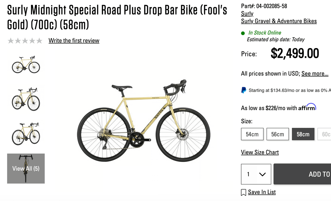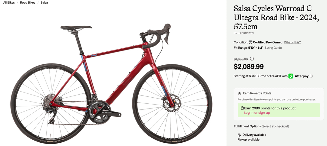 -This pre-owned salsa warroad on TPC. It has ultegra, which is maybe overkill for me, but looks to be a good fit for my use case. And the price seems good.