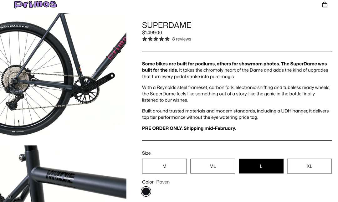 -Primo SuperDame, my dad recommended looking at this. Seems very similar to Surly MS but has L-TWOO electronic shifting (not sure if this is a plus or minus) and a 1x — would almost definitely want to swap the chainring for the roads, but shouldn't be a big deal.