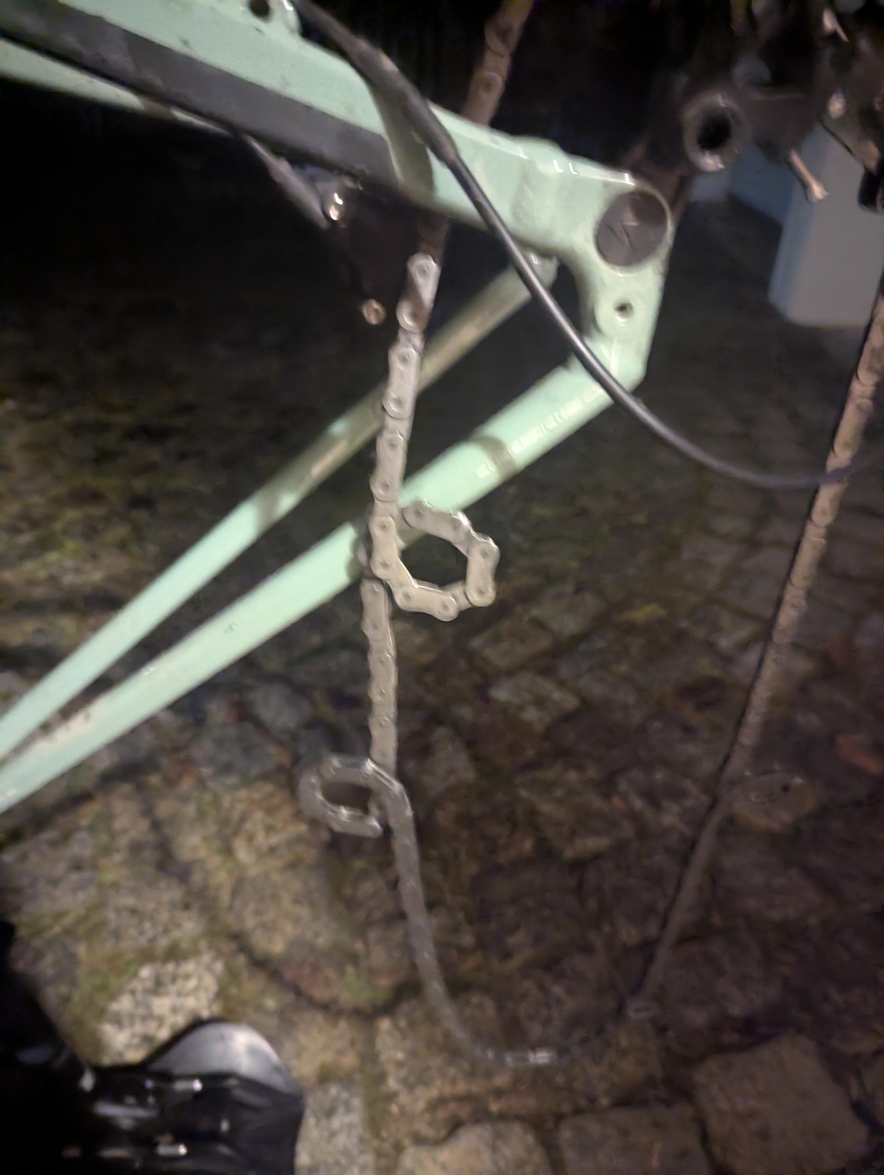 Wie bekomme ich diese Knoten raus ohne eine Kettenzange? Eigentlich wollte ich morgen ne große tour machen und nur die Bremsbeläge austauschen aber jetzt das 😧