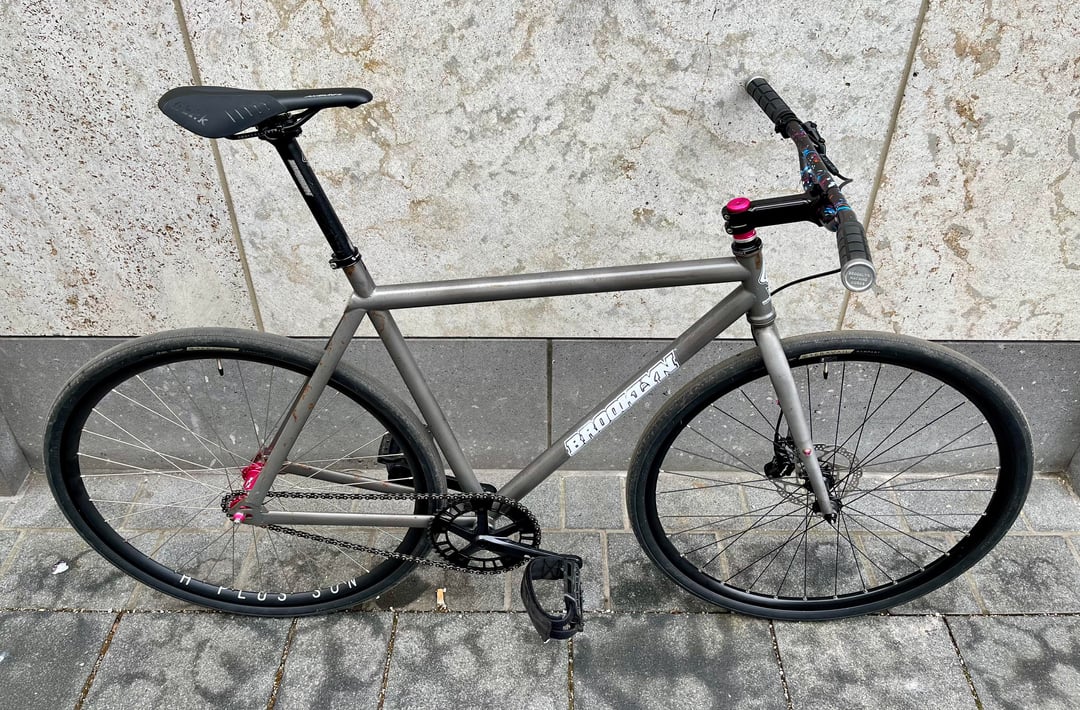Rebuilt the front to run a disc brake. New steel fork and a new wheel. Will probably buy a matching rear wheel. by Cyclenoerd Bicycle Bike Fixed Gear Fixed Gear Bicycle Fixed Gear Bike
