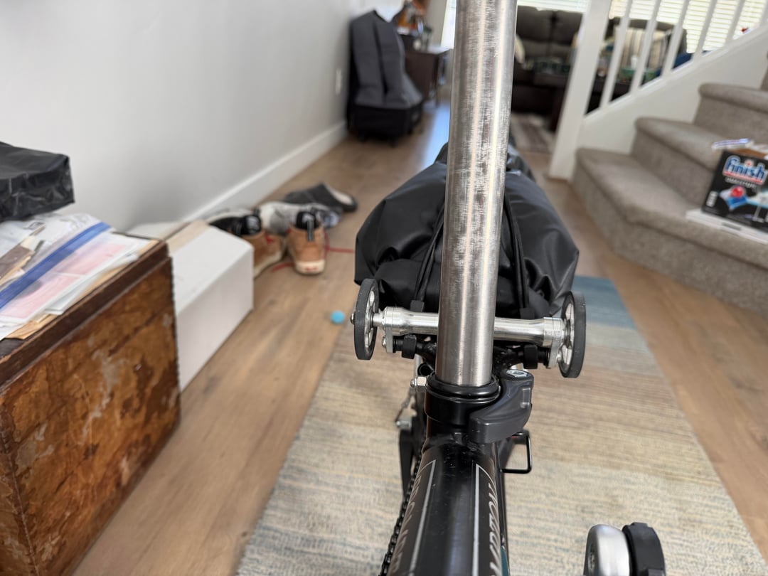 I'm heading to Spain to do a few days ride on the Camino de Santiago with my M6R. With more third party accessories I decided to try out a new setup. I wanted a smaller bag up front but could fit under the airplane seat when I fly over from the US. The Rock Bros Brompton bag is a great size and I liked the roll top. But the carrier doesn't work with the standard Brompton carrier block. So that was a bummer. I'll probably just go back to the ole Brompton backpack that I used on the first Camino ride.