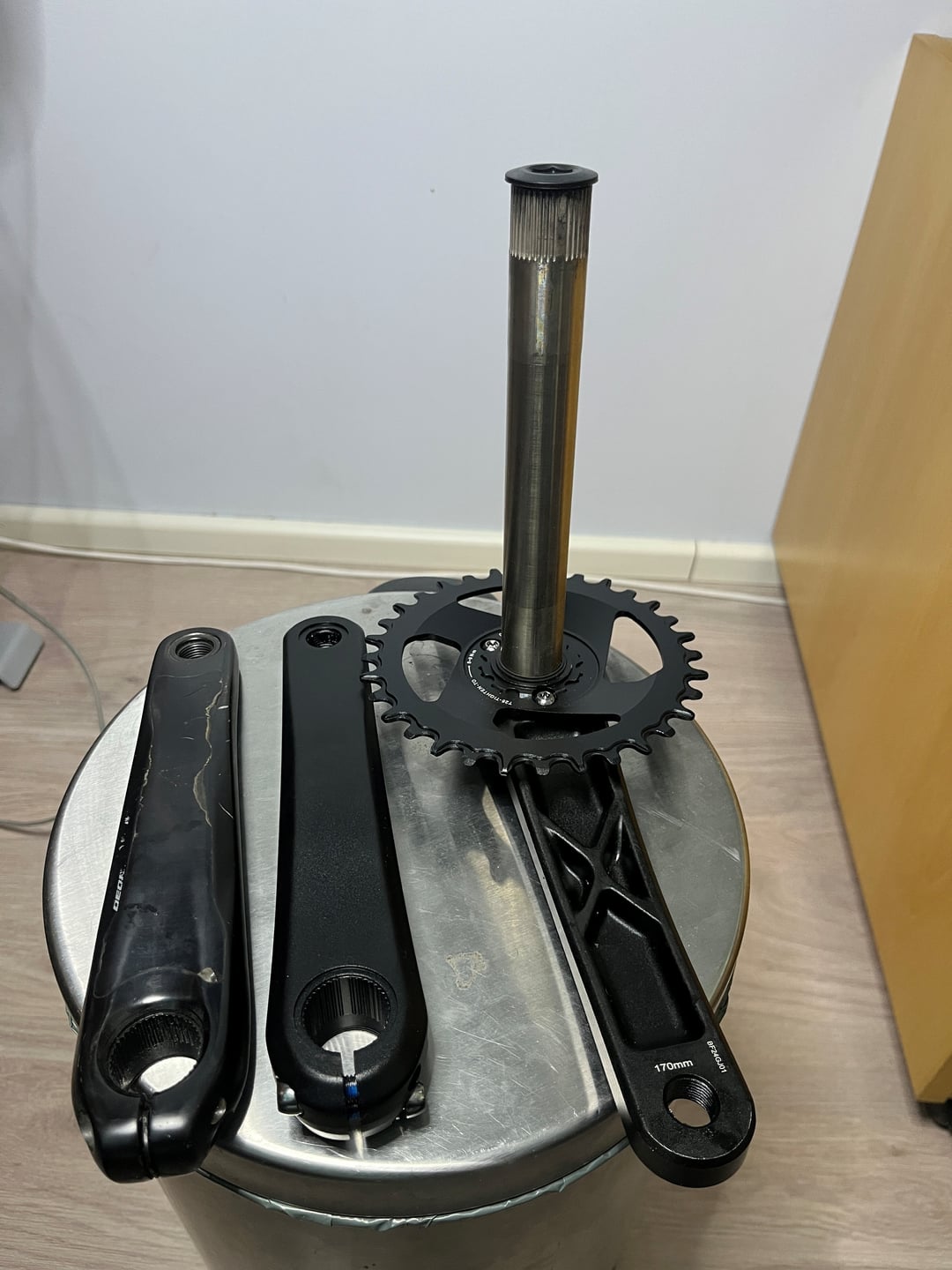 But the Chinese do 🙂 So these cranks are Shimano Hollowtech compatible (I tested this with a Shimano crank shown in the photo). A fun extra detail is that the chainring mounting standard is SRAM Direct Mount. At least at first glance, they seem to be of decent quality, and the crank dimensions are very close to Shimano’s originals.