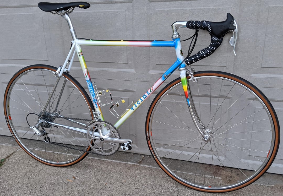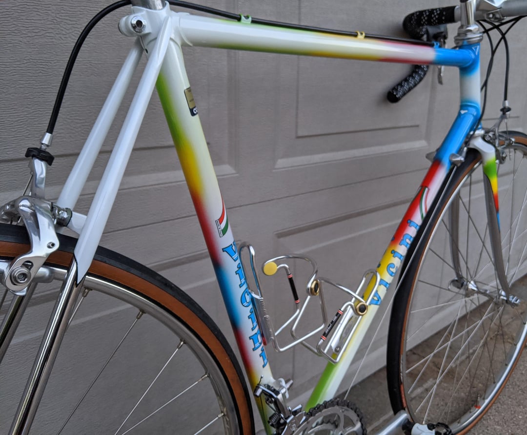 Late 80’s Vicini with Campagnolo Chorus 8 speed.