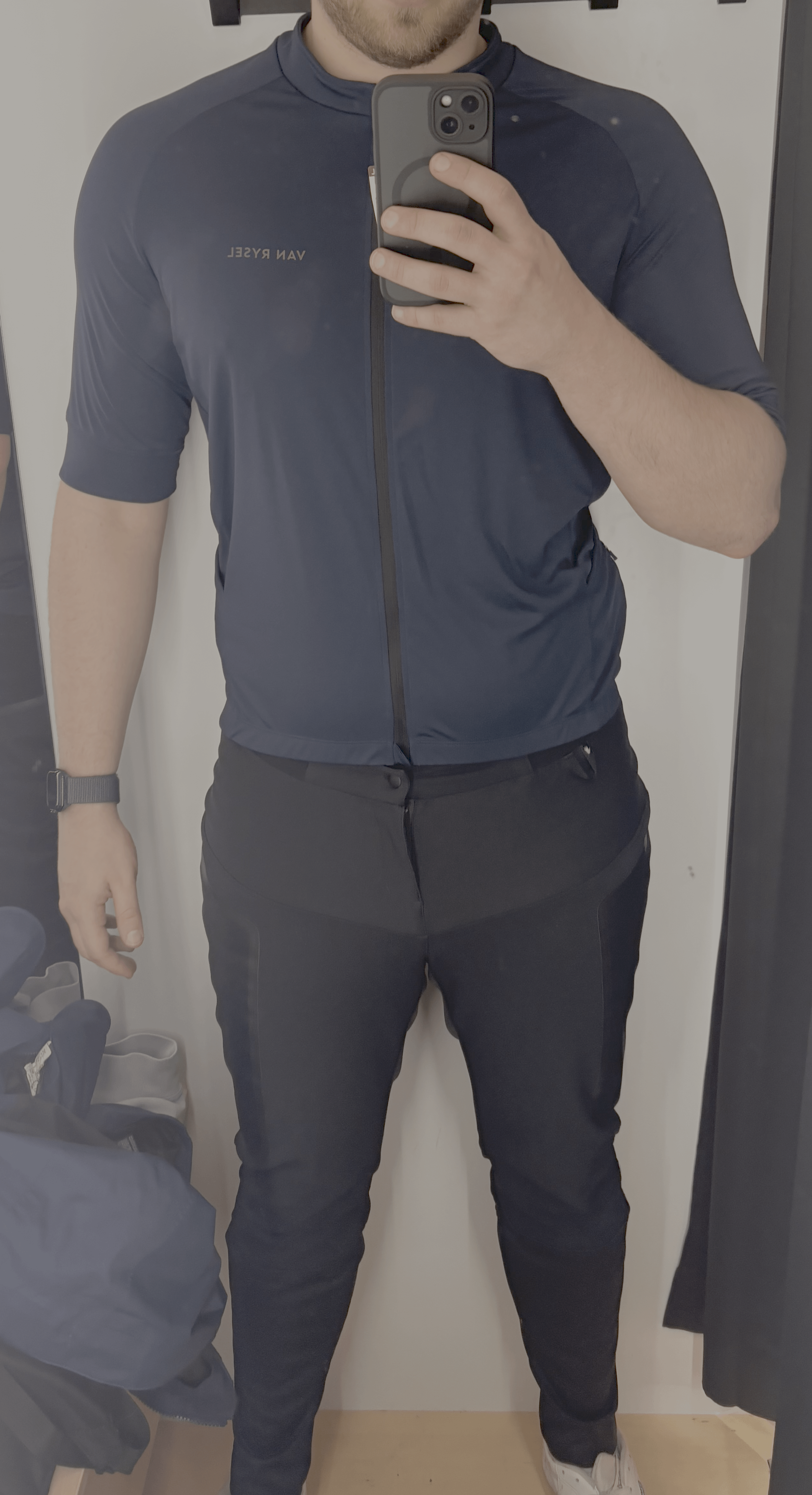 You have to go two sizes down. Jerseys are always short. Try it on with a bib. Decathlon has nice stuff.