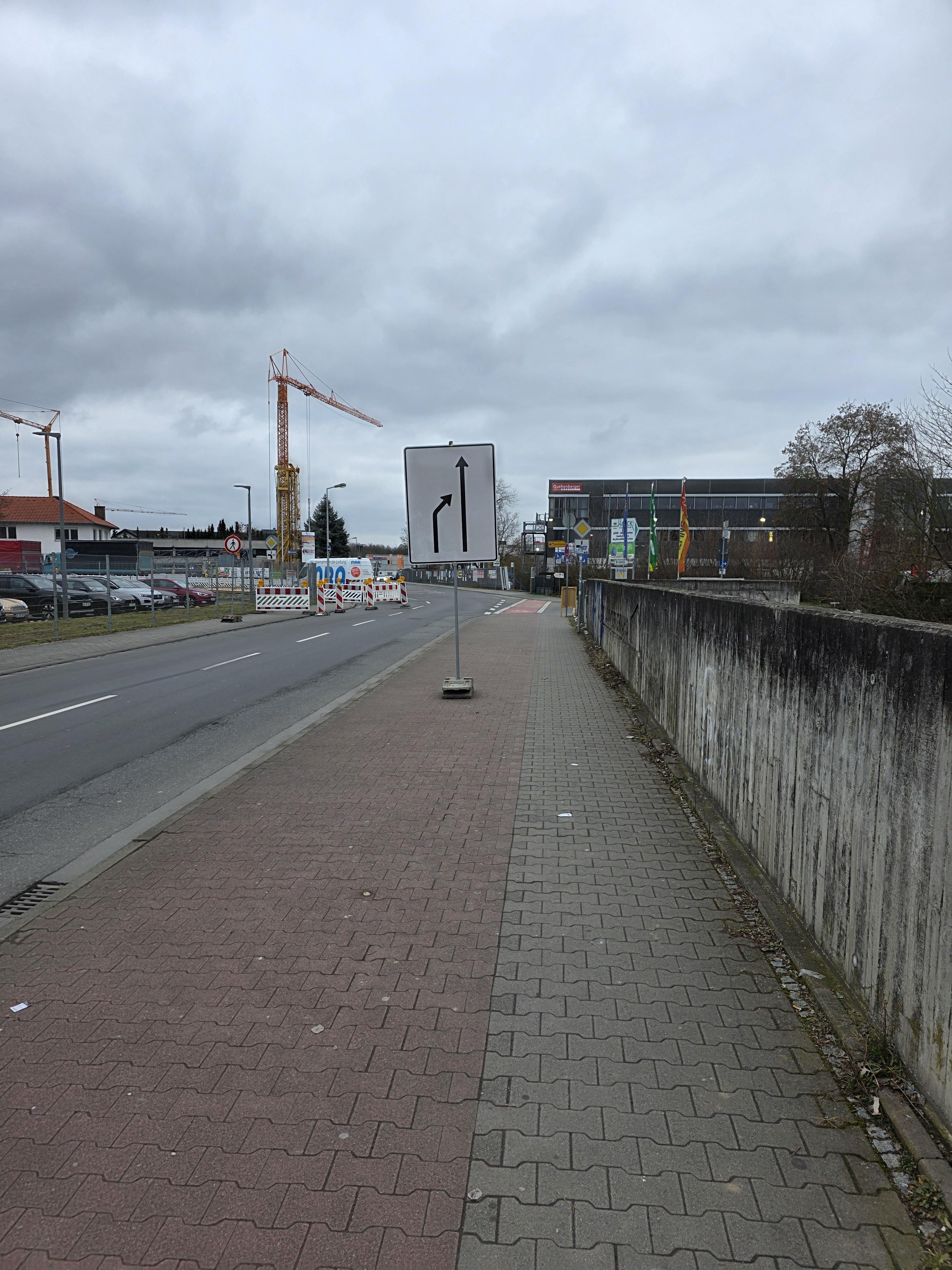 Wenn es dich etwas beruhigt, weiter hinten steht ja bereits ein Straßen- und ein Holzschild auf dem **Fußweg**. 😉 Da hast du dann als Fahrradfahrer gegenüber den Fußgängern ein besseres Vorbeikommen.