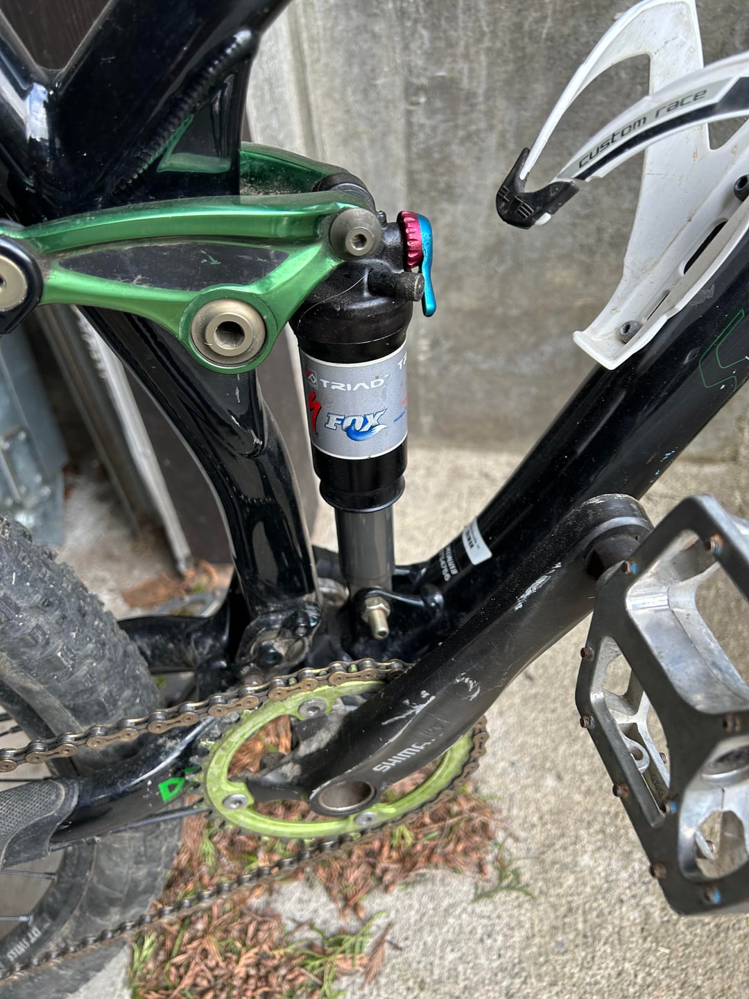 The rear shock and fork look correct to the year and model, but the giant home depot bolt holding the shock is not stock.