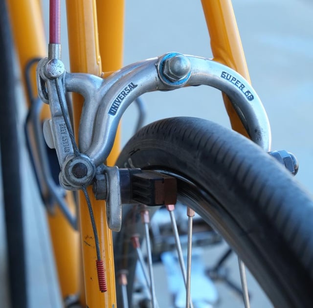 I bought the Universal rear brake used from a friend 50 years ago. I shortened the brake's axle and tapped more threads on it so it would take a recessed Allen nut.