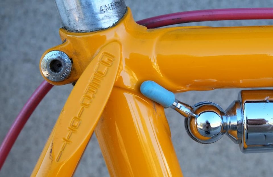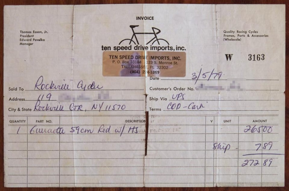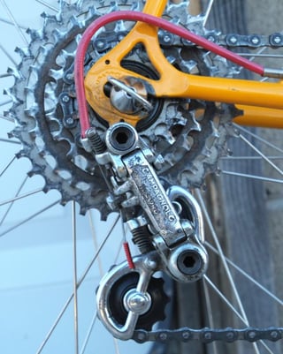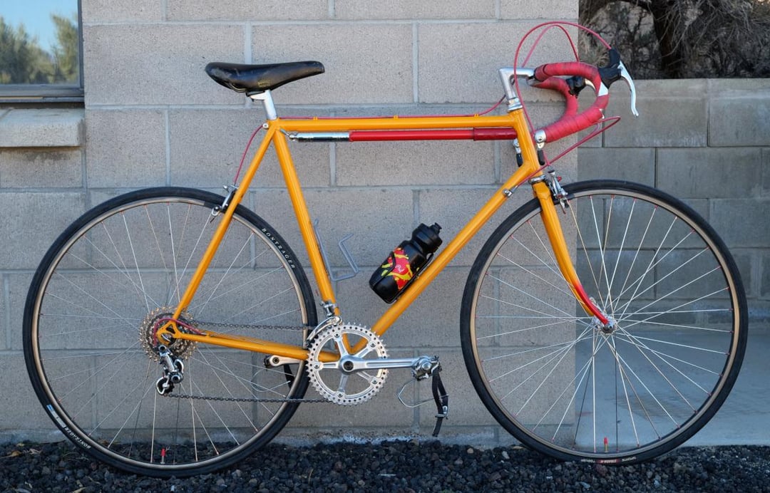 Guerciotti frame made from Columbus SL tubing. I bought the frame in 1979 from the importer. I was a teenager pretending to be a bicycle store. There was a big annual trade show for the bicycle industry in New York City and they'd let you in if you had a business card. Wholesalers would ship to me COD and I'd give the UPS driver cash.