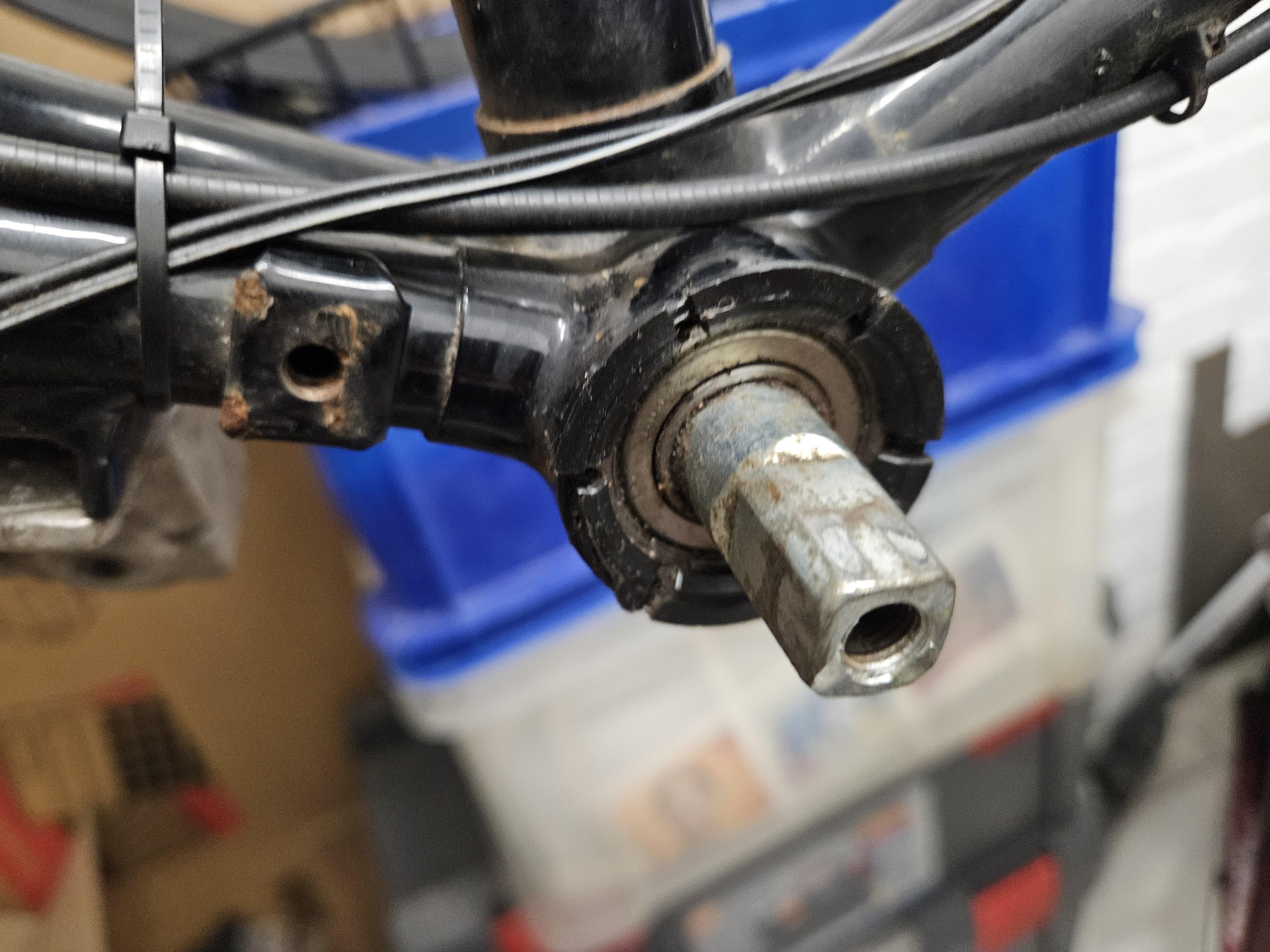 Moin, ich restauriere ein altes Hollandrad und bin dabei auf dieses Tretlager gestoßen, das mir unbekannt ist. Es scheint im Grund nur aus Welle, den beiden Rollenkugellagern 6003 und diesen seltsam geformten Plastikkappen zu bestehen. Problem ist, ich hab nicht den leisesten Schimmer, wie sowas ohne Zerstörung demontiert werden könnte. Die Plastikkappen sind viel zu dünn, als dass man da ein Werkzeug ansetzen könnte und falls da am Ende doch ein Gewinde drin sein sollte, wird raustreiben auch schwierig. Die Gehäusebreite ist ca. 69mm und der Durchmesser scheint ziemlich nah bei einem BSA Lager zu sein. Was denkt ihr, bzw. hat jemand so ein Lager schonmal gesehen?