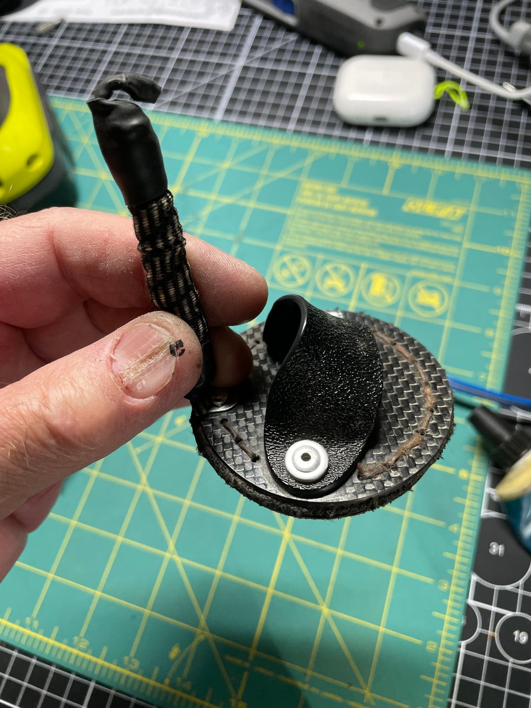The last photo shows my ‘Sand & Snow Foot’, I made from carbon fiber and Kydex. It slips onto the stock rubber foot like a heel less slipper and held on with a metal spring inside parachute cord (prevents cheatgrass from plugging up the spring) that attaches to another small copper hook under the twine wrap (not shown). Every movement of the slipper makes it pull on. It can’t fall off. I’ve been using this foot for around twenty years, mostly for snow. It has been a tremendous help when shedding or fetching layers and gloves in the winter.