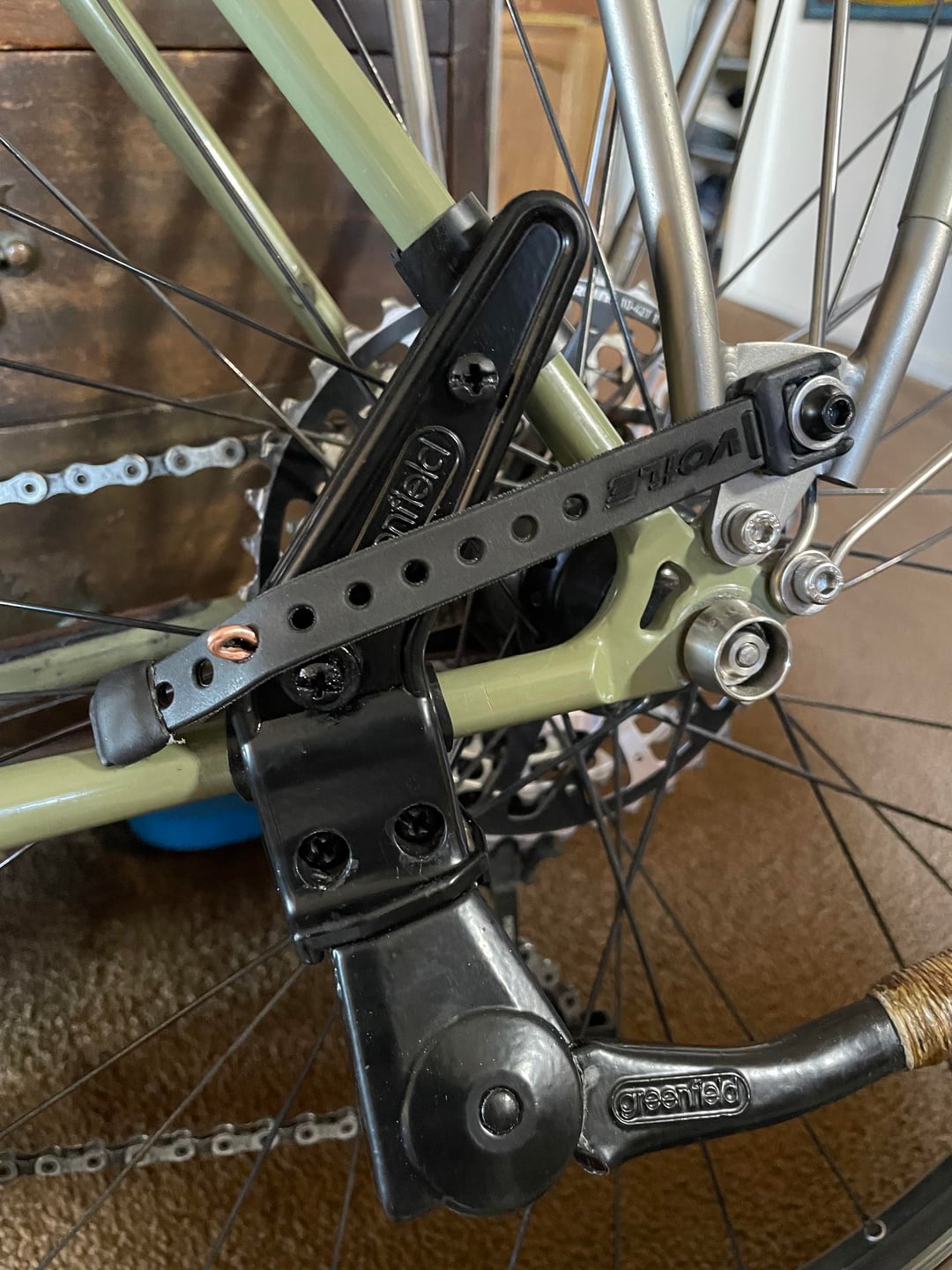 I like my rear mount Greenfield Kickstand, and I like riding my ancient Rivendell Atlantis hard off road. (It’s also been my ‘car’ for well over a decade, so a daily kickstand is an absolute necessity)..