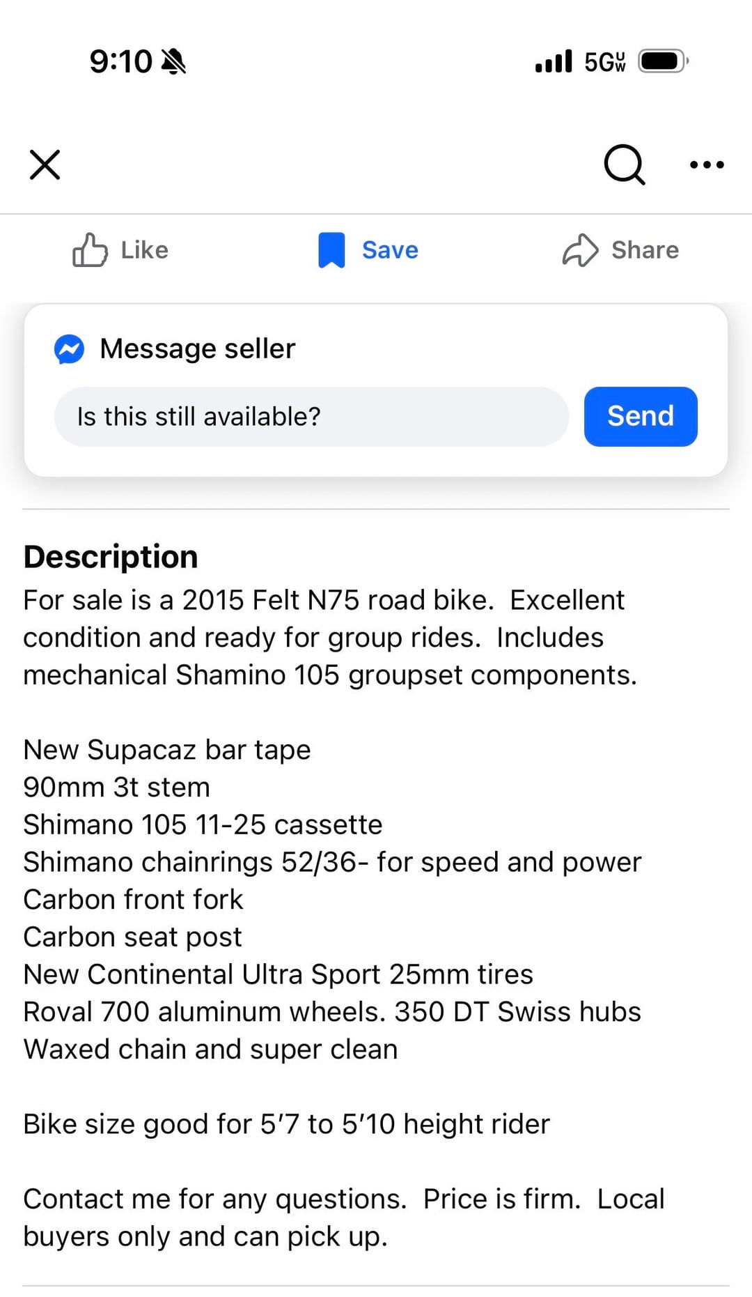 It also says nothing about a price. Rim brake road bikes aren’t super desirable in the current market, but this is a decent spec at least so probably a bit more than an older/entry level bike. Maybe around 500?