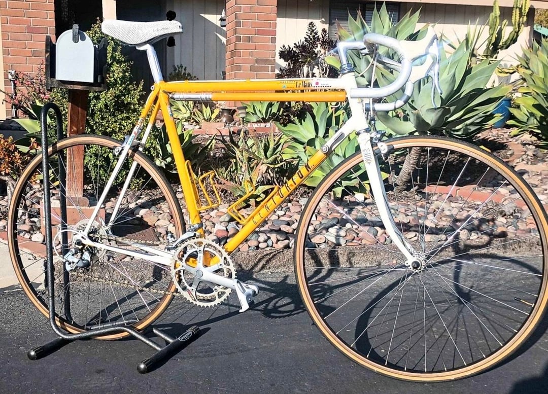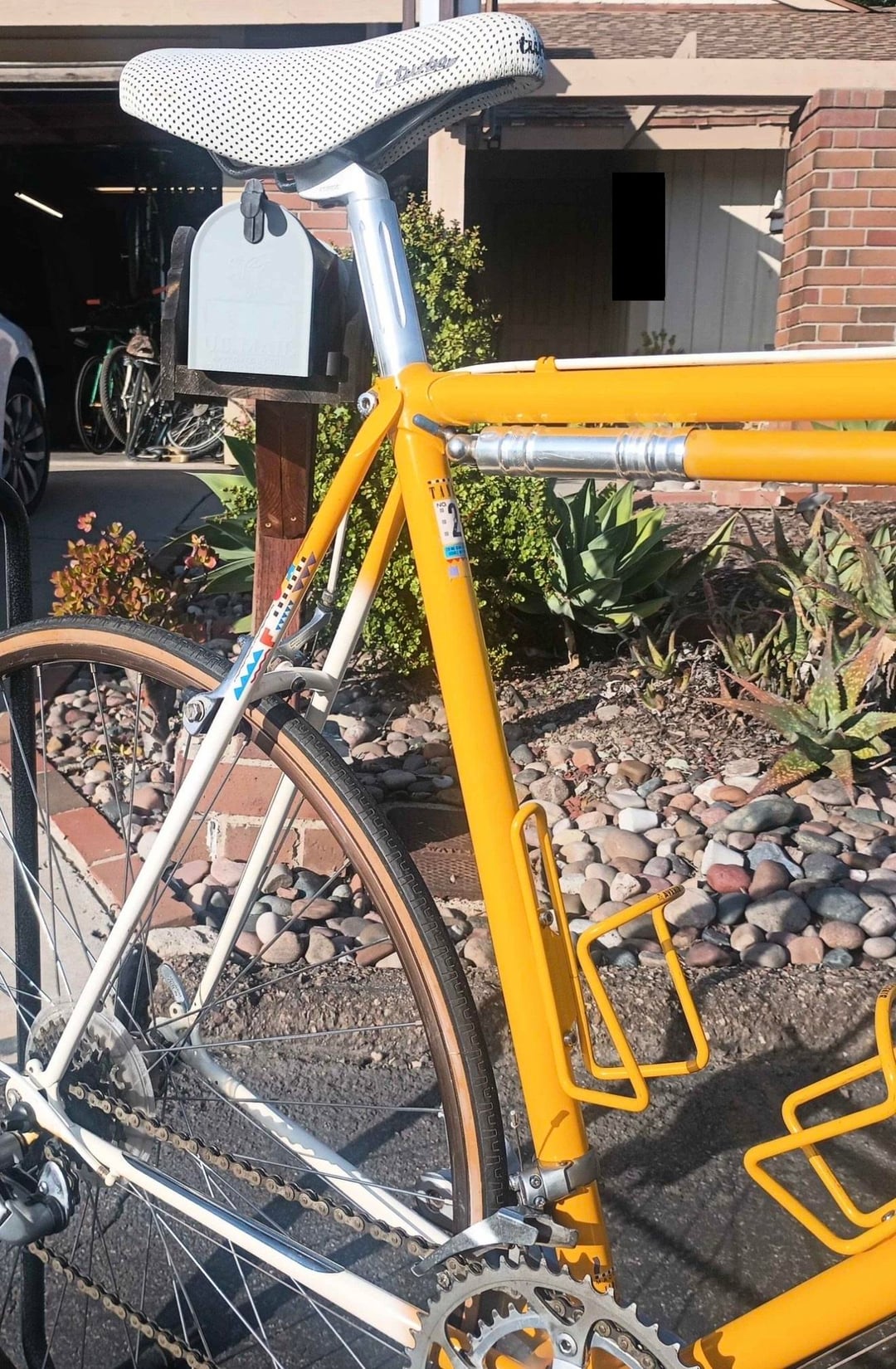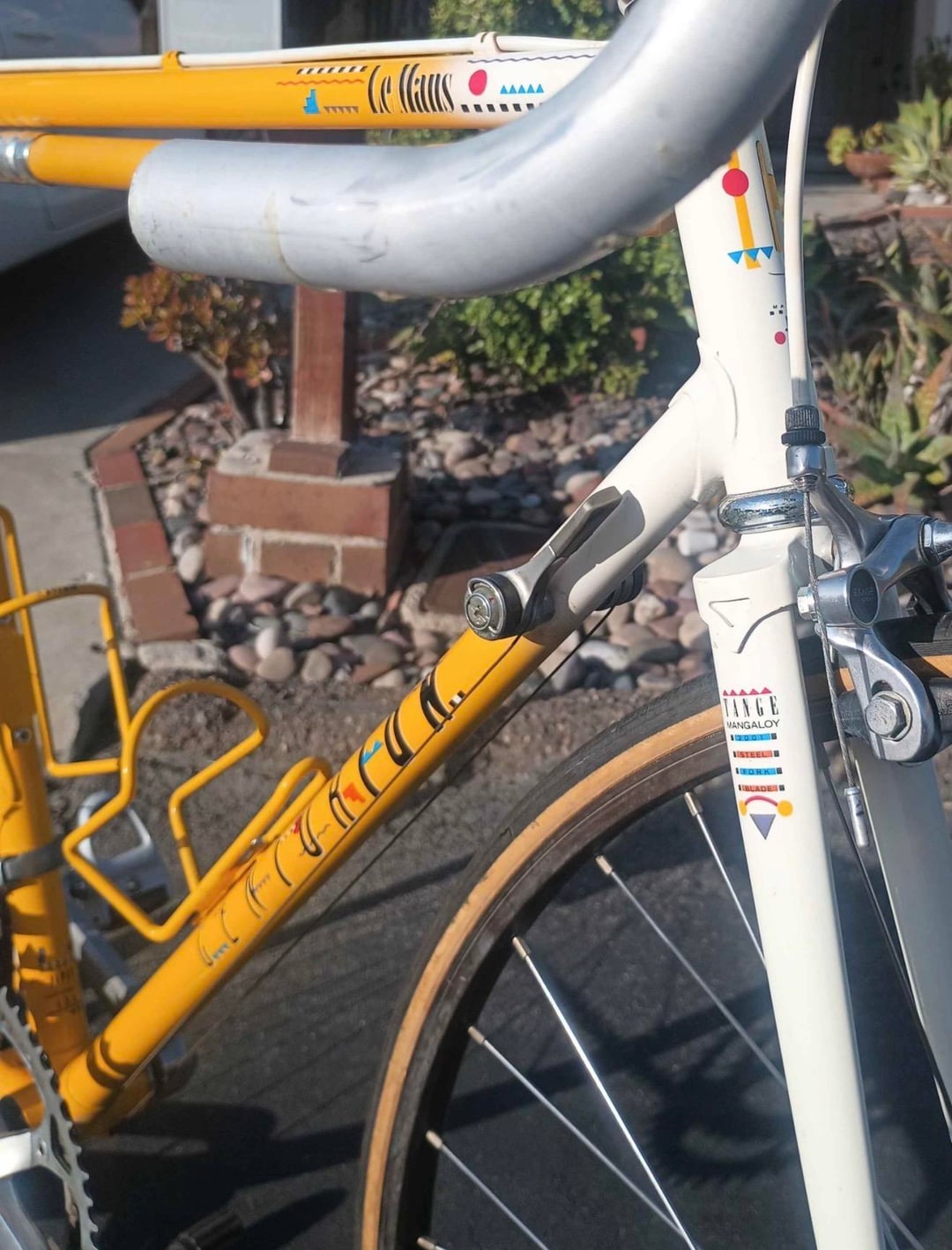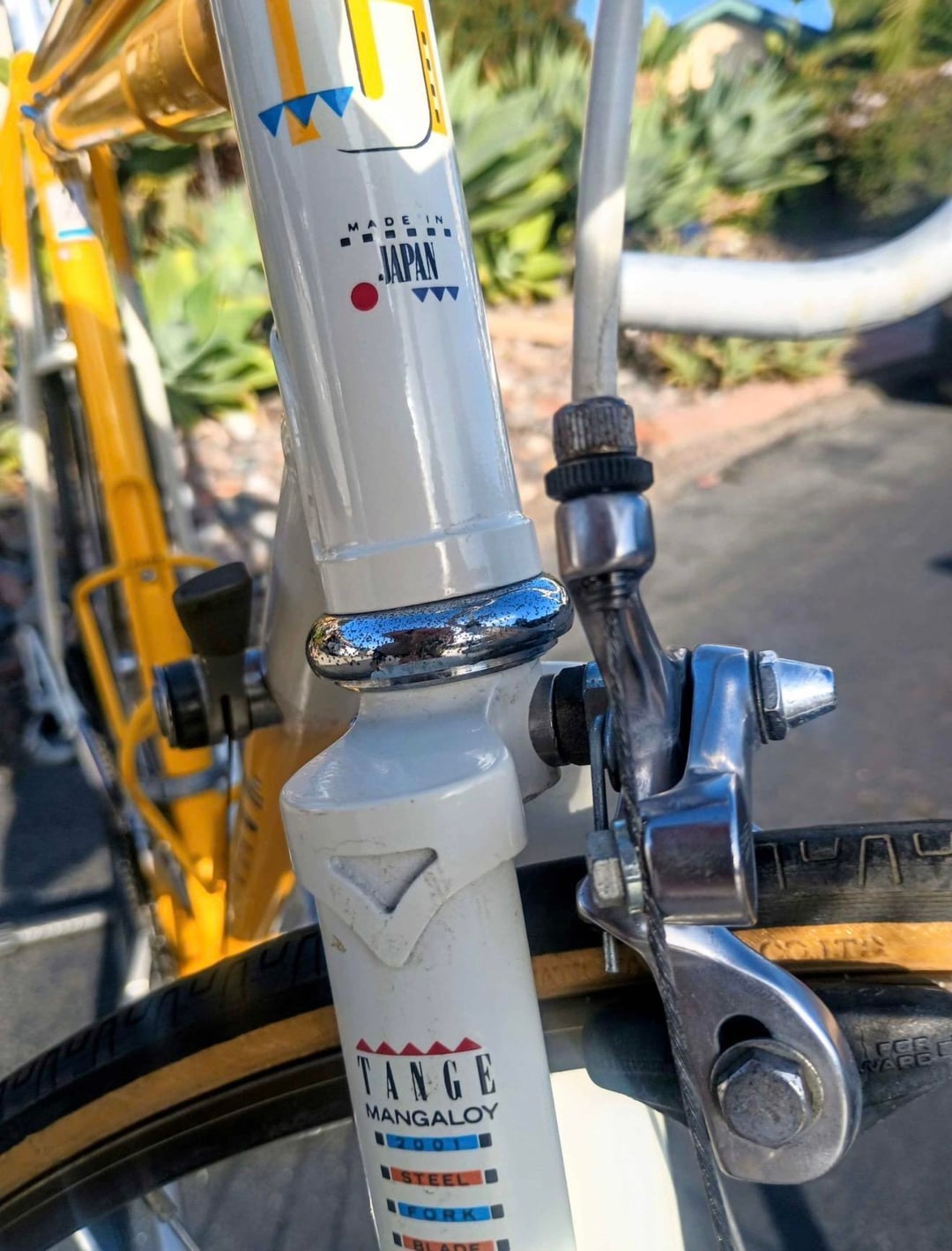 I remember when these came out. Dave Scott and Scott Tinely were Ironman athletes who were “rivals”. Can’t remember who endorsed this brand, it may have been Tinely (he was kind of a jerk), and because I had a choice between this and a Raleigh Professional in pearl white and red/blue Olympic trim colors with chrome fork and rear triangle with a better gruppo, I bought that. This ride was comfortable, but too soft for me, at least for racing.