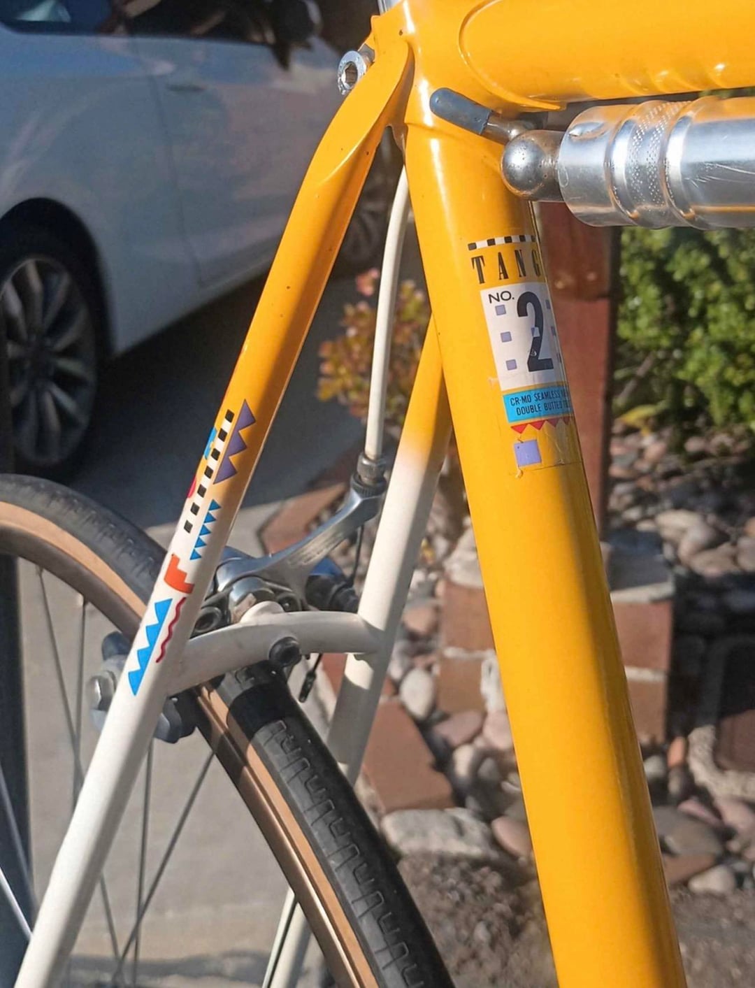 I had an ‘88 in the magenta and white 2-tone with stock Shimano Exage parts – except for an updated 7-speed rear wheel. Mine was in horrendous shape and was scarred and rusted. It was also an AMAZING ride. It may have been built to a price point but someone forgot to tell that bike it was a budget ride – it felt like a full Reynolds 531 bike on the road, and I’ve owned enough vintage bikes to know it. I foolishly sold it, and it is one of a tiny handful of bikes I regret selling. If it fits garb it – and I think you can squeeze 28mm tires onto it. Good luck!